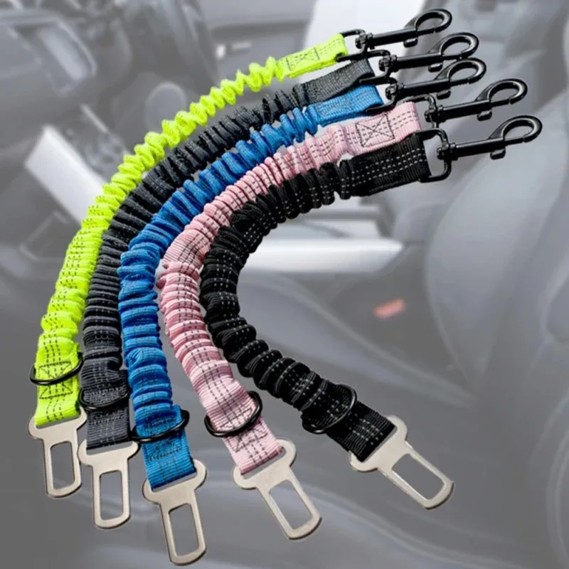 Cinturón de seguridad de coche para perros y gatos, correa de vehículo con amortiguación ajustable, cuerda de seguridad reflectante elástica