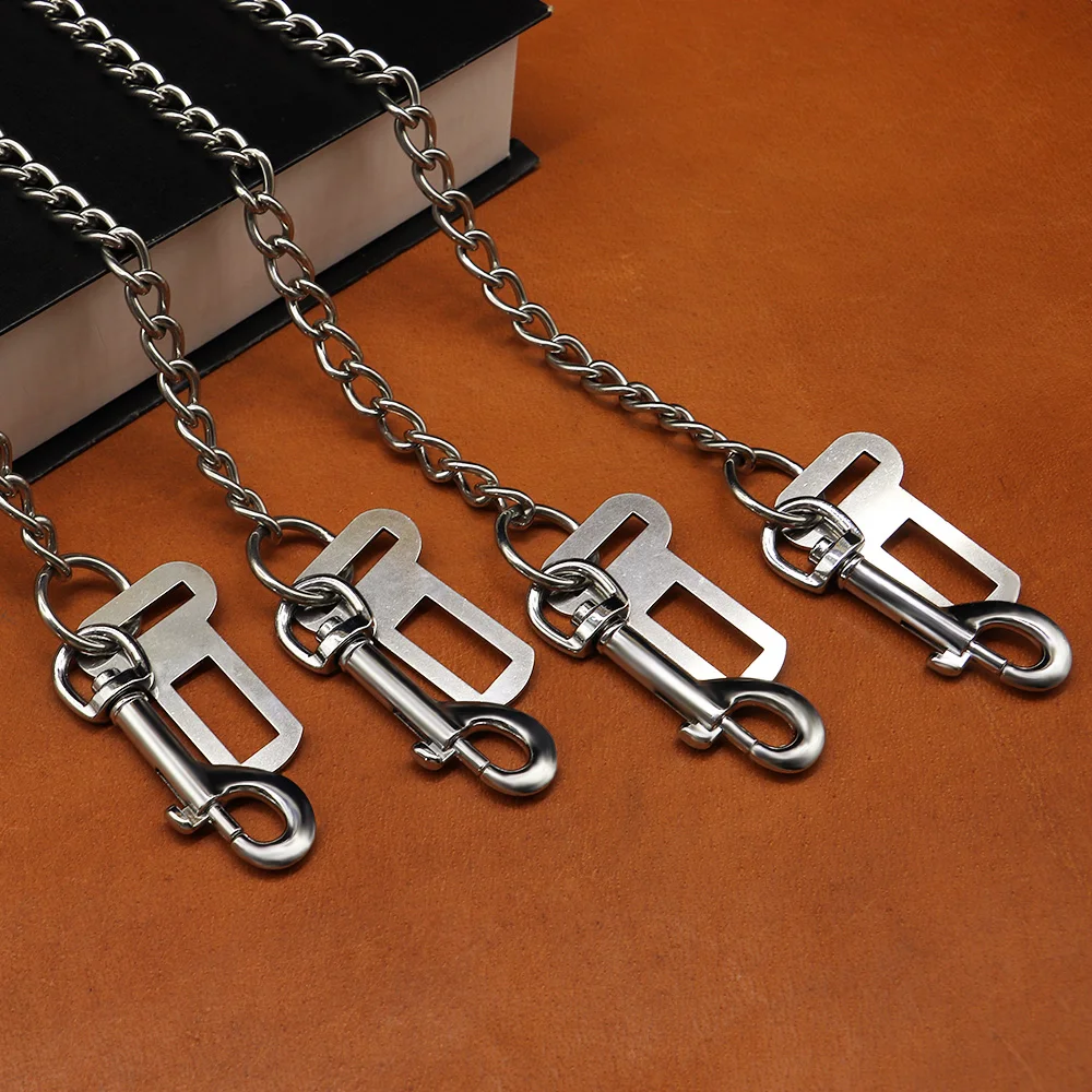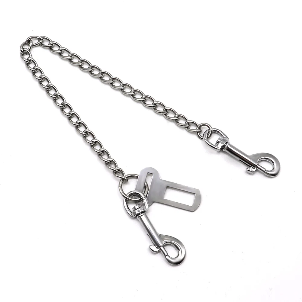 Cinturón de seguridad de coche para perros y gatos, cinturón de seguridad de Metal para mascotas, correa de cadena de acero inoxidable duradera para perros, cinturón de seguridad de vehículo plateado para perros y gatos