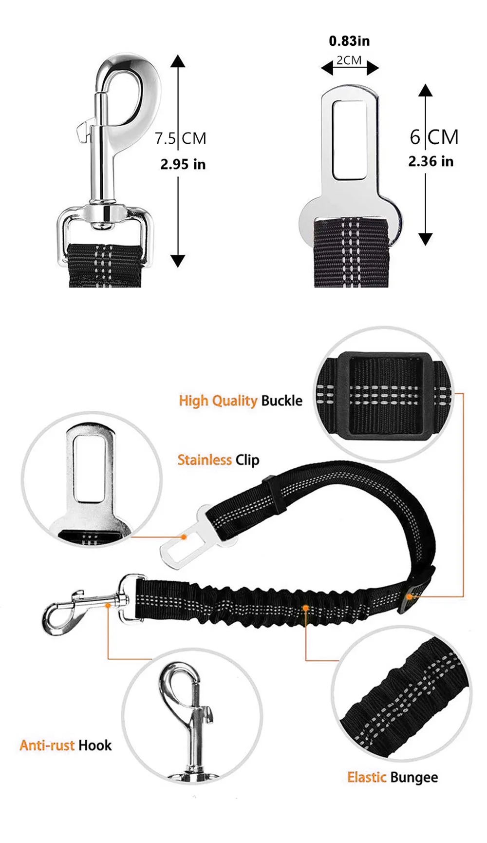 Cinturón de seguridad de nailon duradero para perros pequeños y grandes, cuerda de seguridad elástica reflectante ajustable para cachorros, cuerda de seguridad para coche de viaje, Bulldog Francés