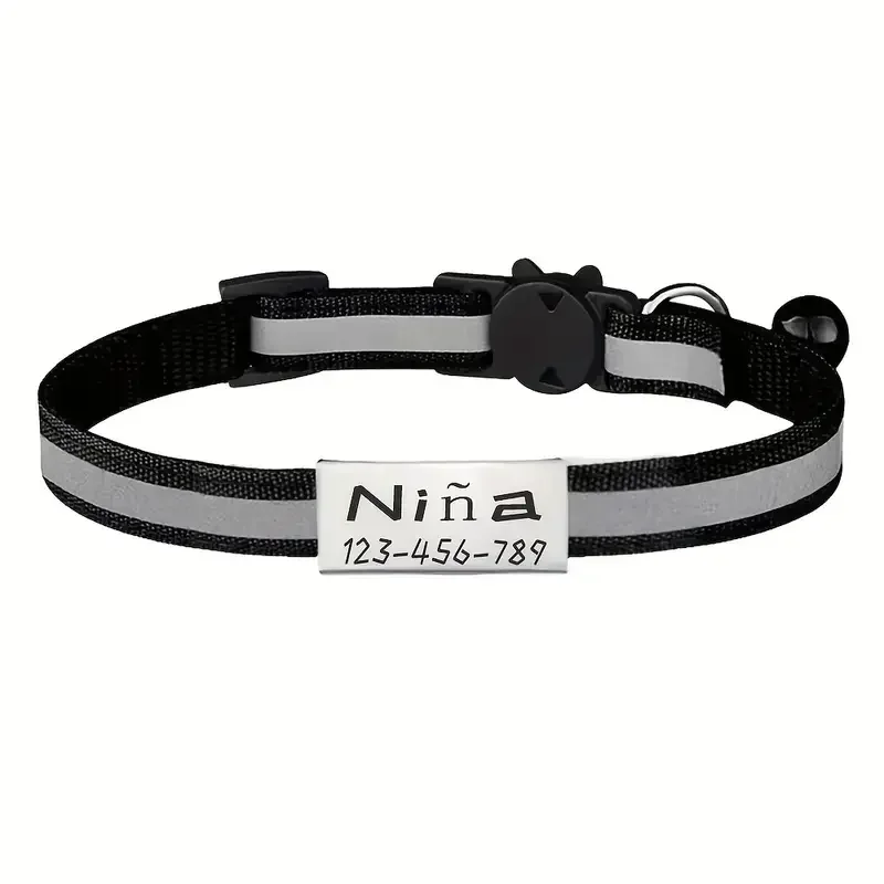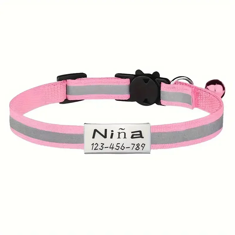 Cinturón de seguridad reflectante para gatos, Collar con hebilla, etiqueta de identificación personalizada ajustable, Collar de nailon para cachorros y gatitos, antipérdida