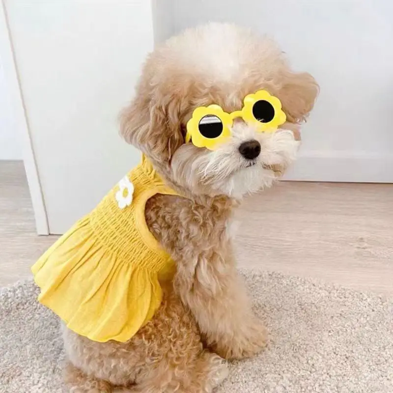 Classic Pet Sunglasses Sunflower Heart Dog Cat Glasses Accessories for Bulldog Summer Beach Photo
