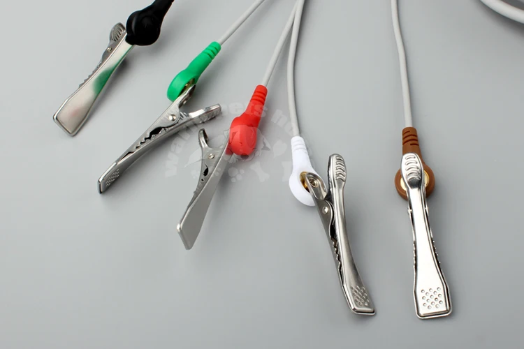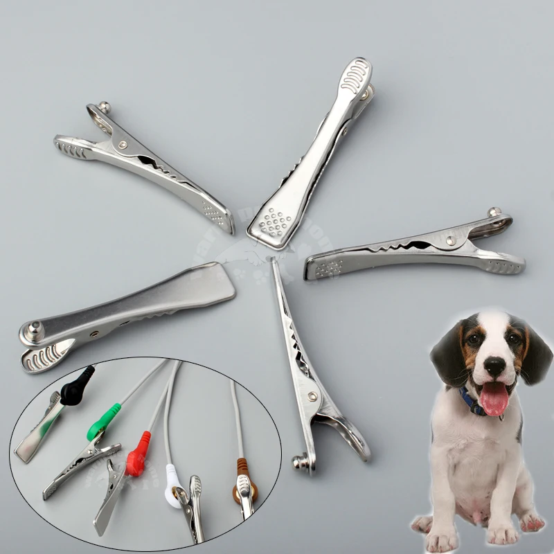 5 uds animales reutilizables mascotas perro gato veterinario ECG/EKG pinza de cocodrilo electrodos para equipo veterinario de Cable a presión