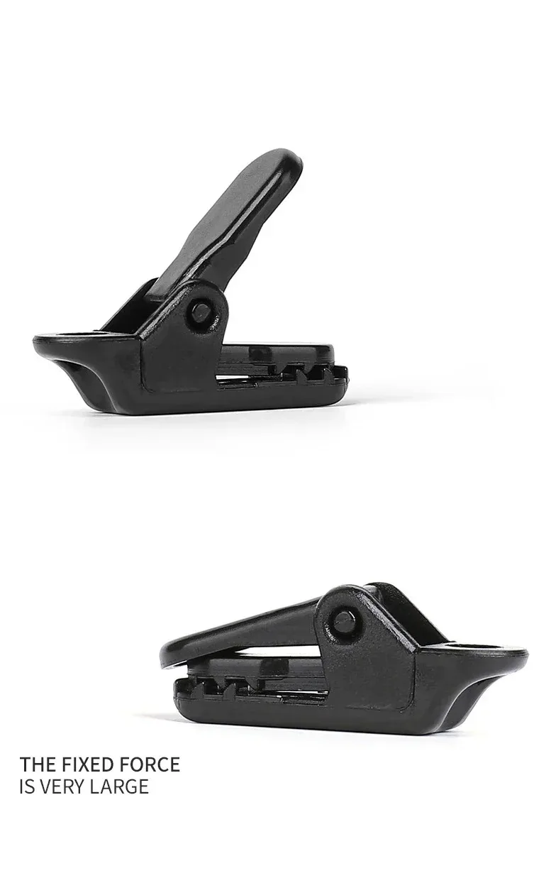 Características: Un clip accesorio pequeño y práctico, que se puede utilizar con paracords de estándar militar para fijar marquesinas, carpas reforzadas, etc.El diseño sofisticado permite que los dientes se engranen con mayor fuerza.