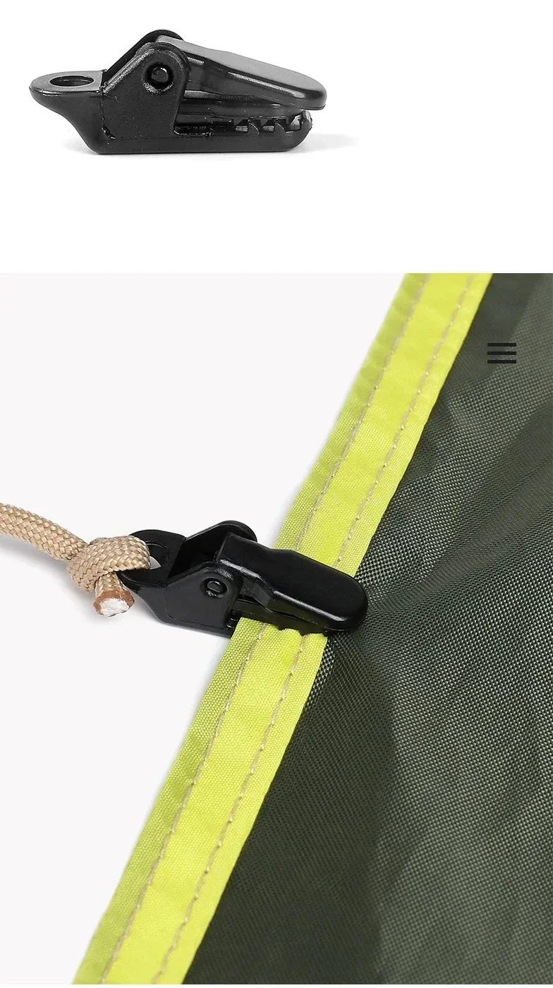 Nombre: Clip de cocodrilo de punto de tracción adicional para tienda de campaña, dosel para acampar al aire libre, gancho de punto de tracción, clip fijo a prueba de viento