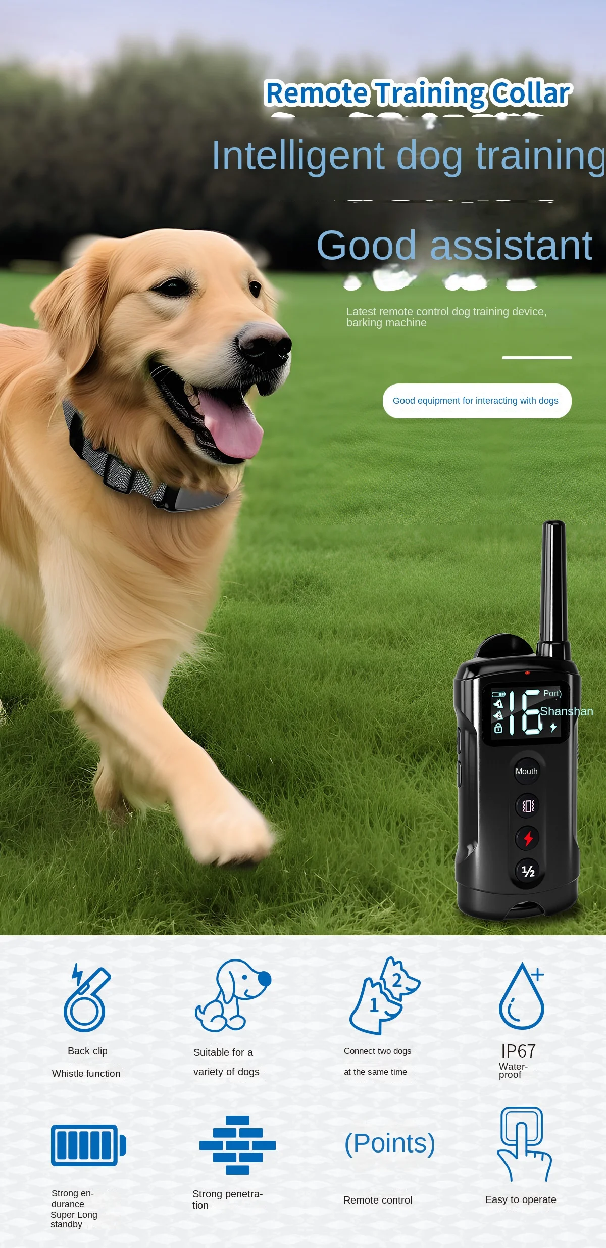 Clip trasero silbato entrenamiento de mascotas, entrenador de perros, collar para mascotas con parada de ladridos, descarga eléctrica, sonido de vibración, a larga distancia
