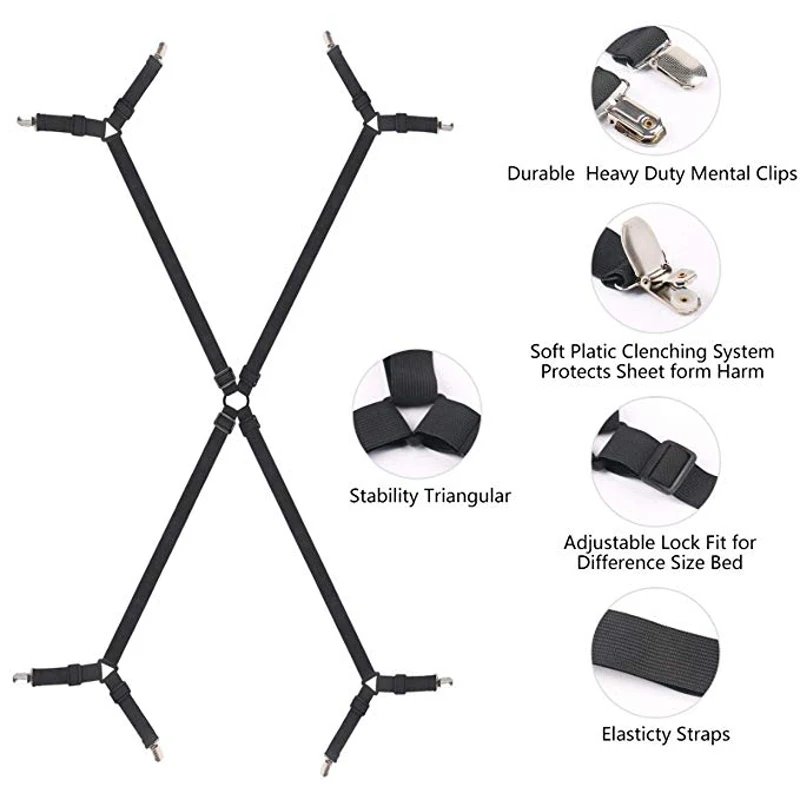 Clips para funda de colchón con cierre cruzado, correas ajustables para sábanas ajustadas para cama, tirantes, pinzas para el hogar, dispositivos organizados 35