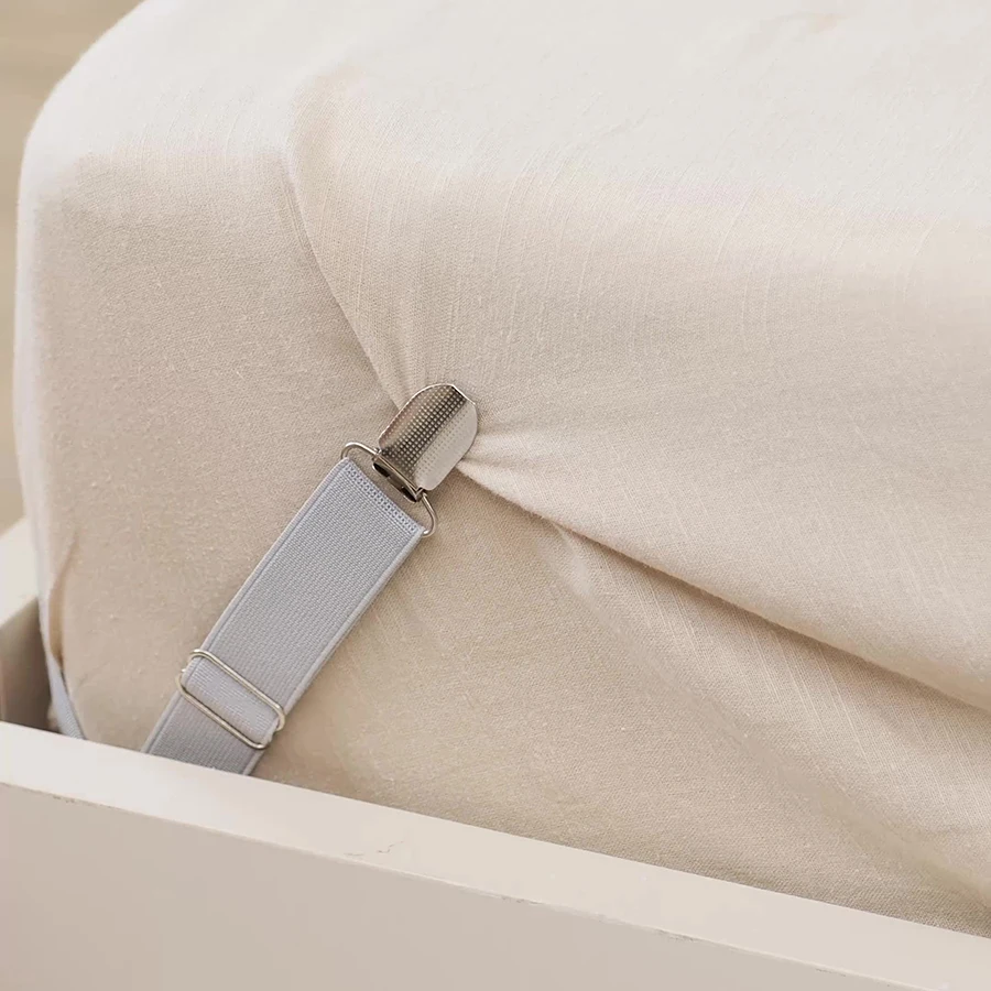 Clips para sábanas, correas ajustables para soporte de sábanas, juego de 4 Clips elásticos para ropa de cama, sujetadores para el hogar y el Hotel