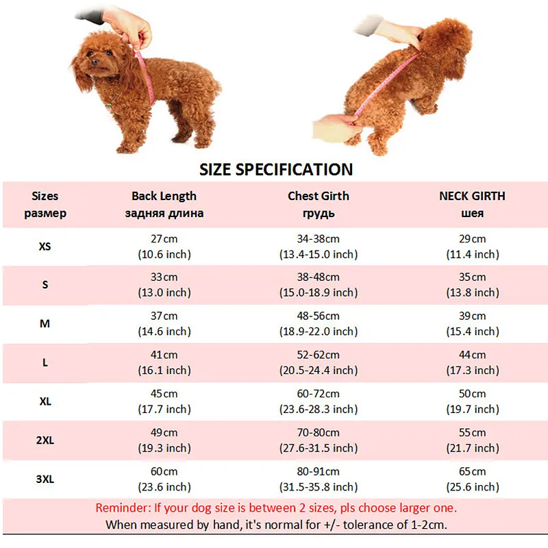 Pls measure your dog's Back Length and Chest Size before buying!