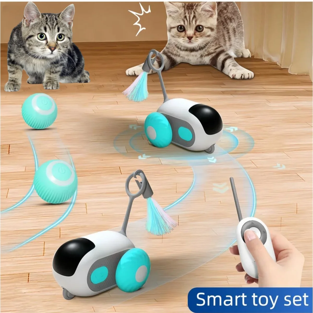 Coche de juguete para gatos con Control remoto inteligente, juguete interactivo para gatos RC, auto juego rodante, movimiento automático para gatos de interior, bigote, juguete divertido para gatosCaracterísticas: