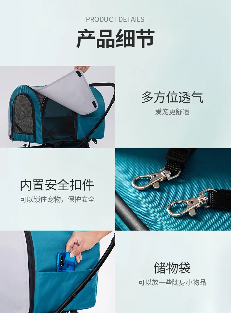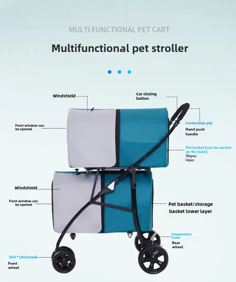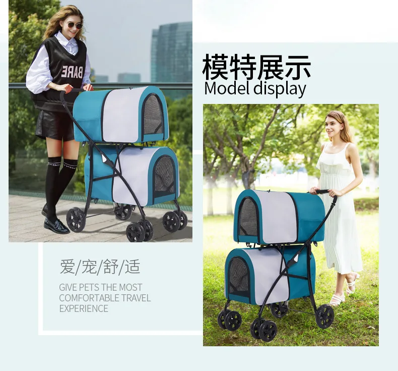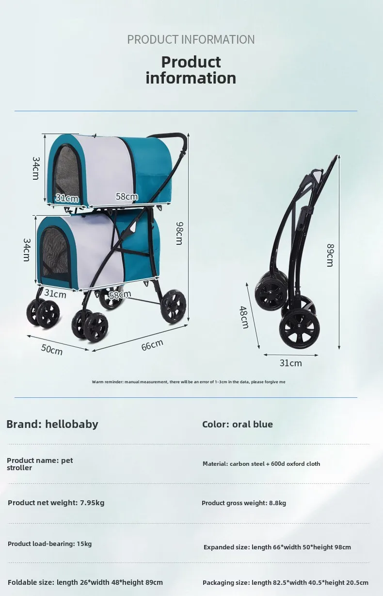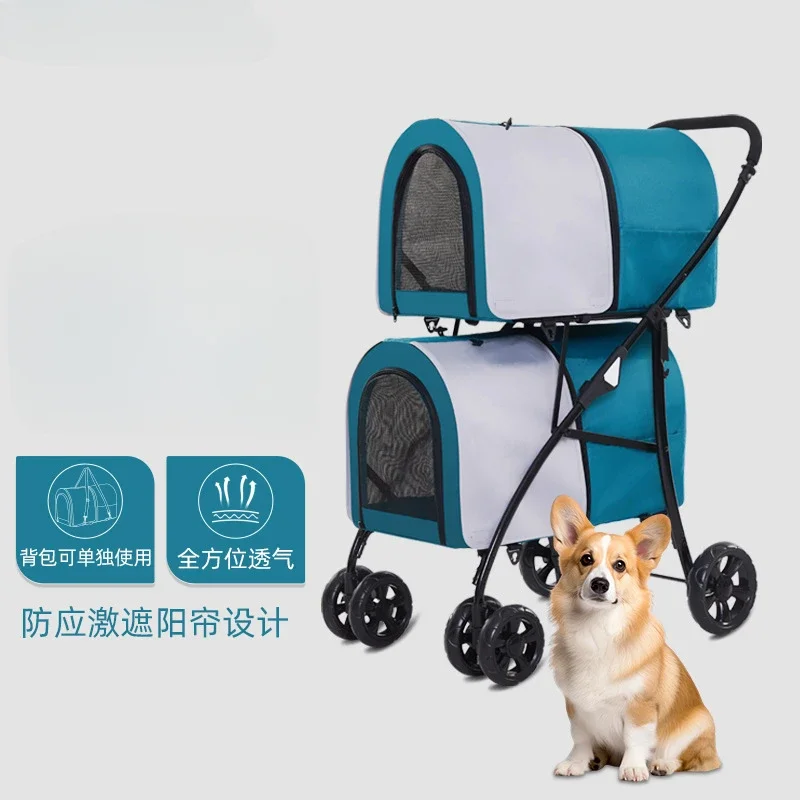 Cochecito para mascotas de dos pisos de gran espacio, ligero para exteriores y fácil de plegar, carrito para perros y gatos, cochecito para mascotas, carrito para perros