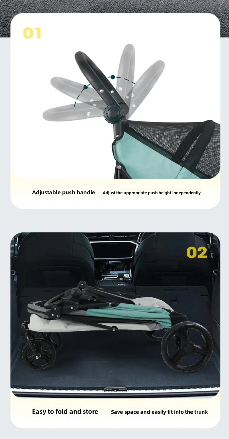 Carro gigante para mascotas, carrito plegable ligero para salir, parabrisas