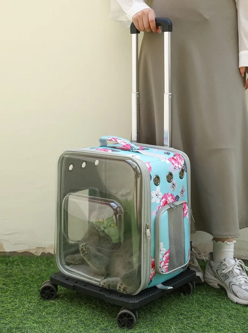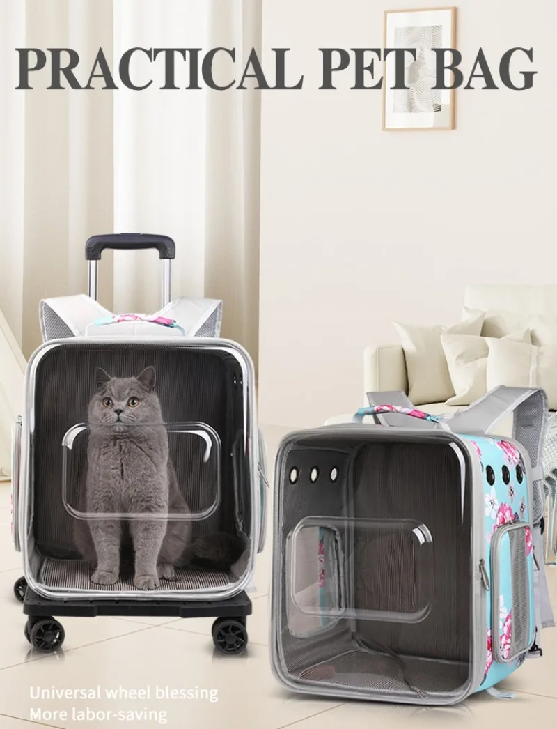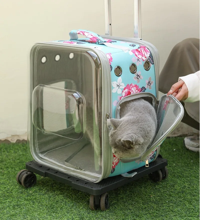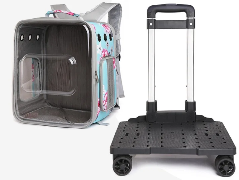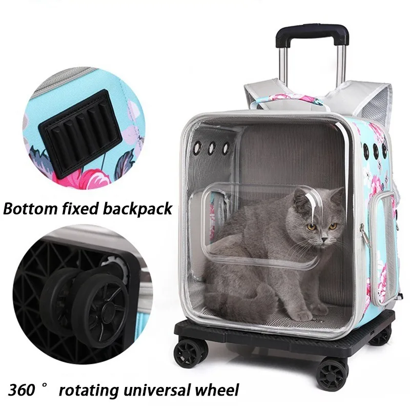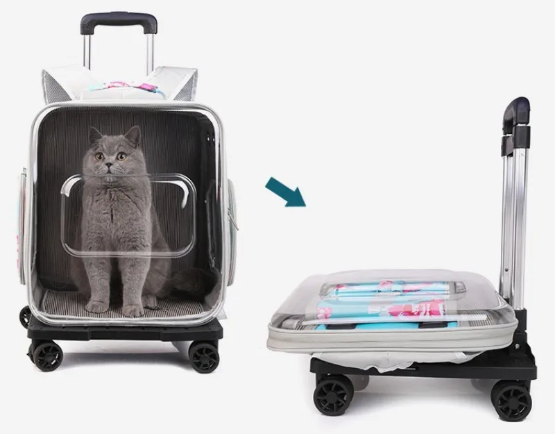 Cochecito plegable para gatos al aire libre, bolsas portátiles ligeras, portabebés para gatos, cochecito transparente con ruedas, Maleta desmontable para mascotas