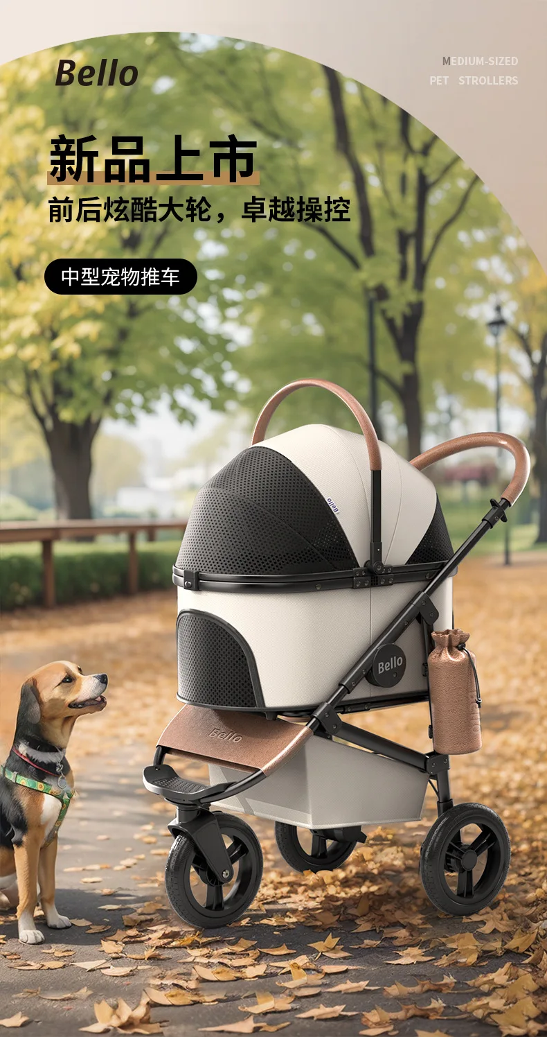 Cochecitos para mascotas, carrito para perros y gatos, salida de separación plegable para viajes al aire libre