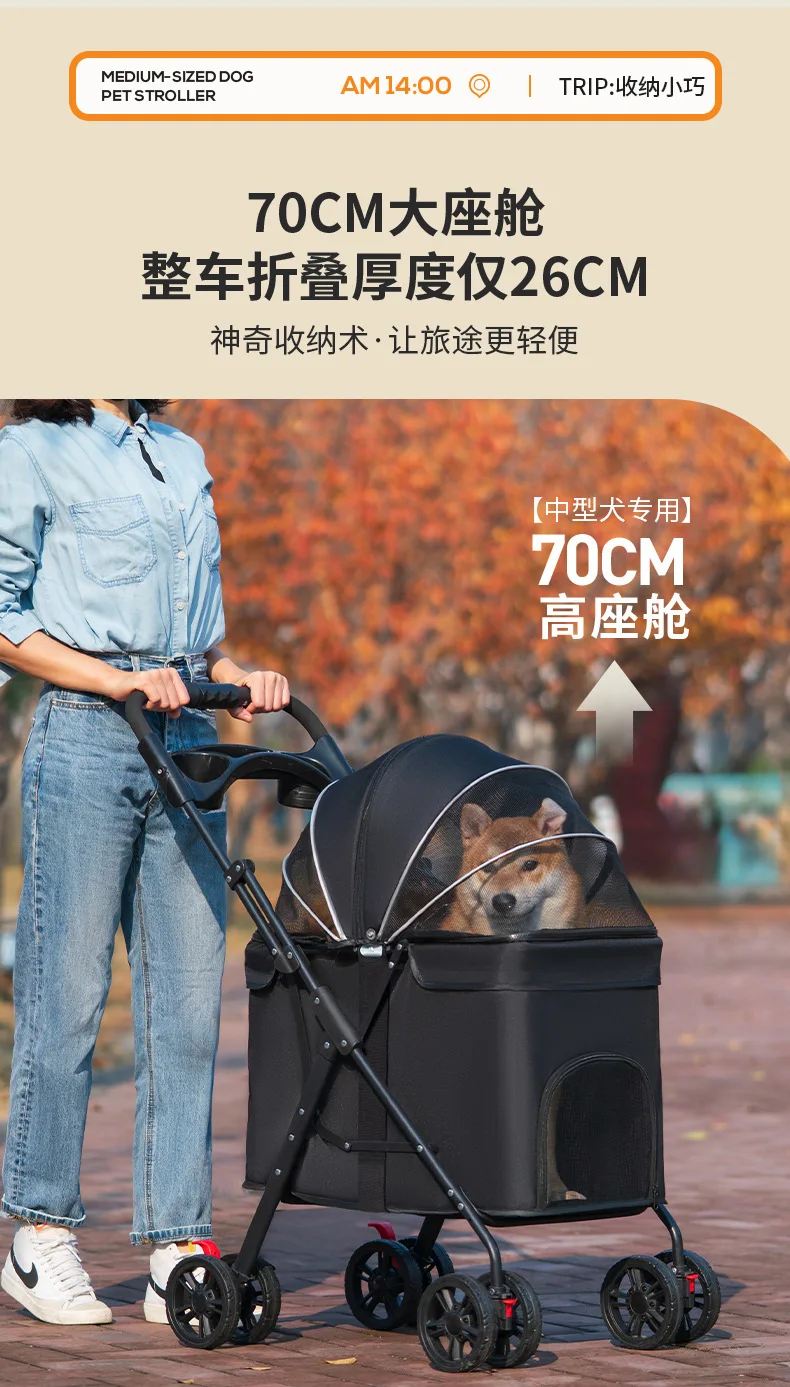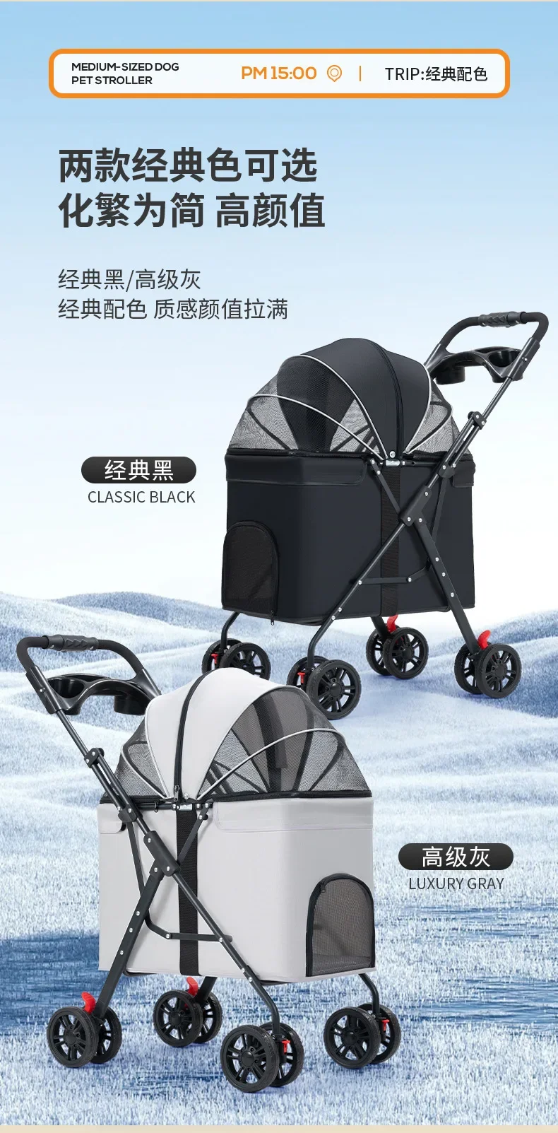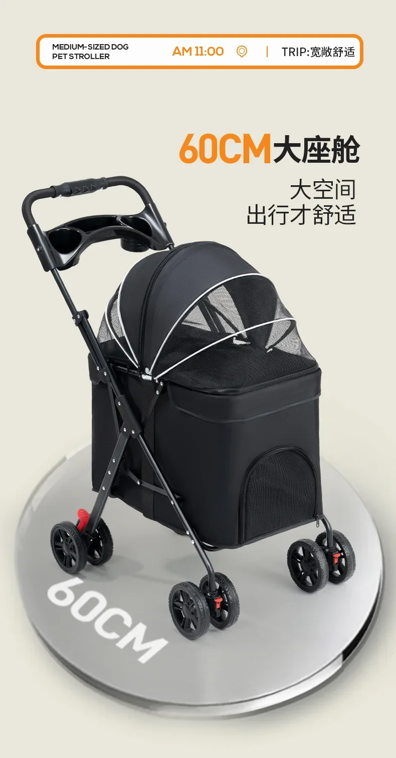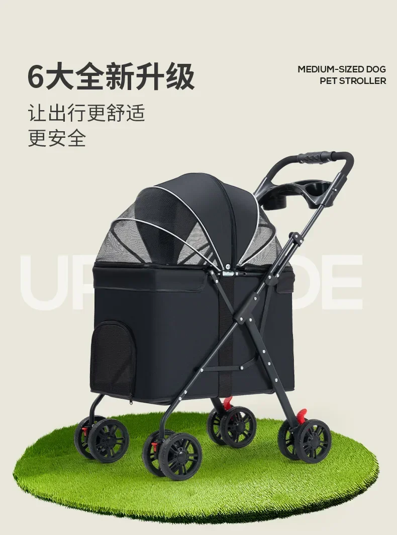 Cochecitos para mascotas medianos y grandes, cochecitos de peluche para perros y gatos, carrito pequeño para mascotas, suministros ligeros y plegables para gatos