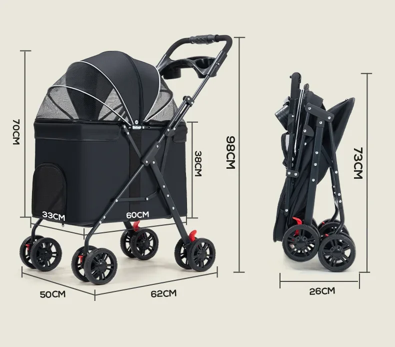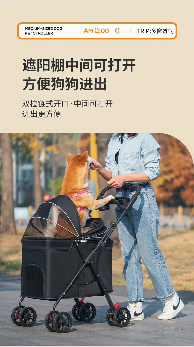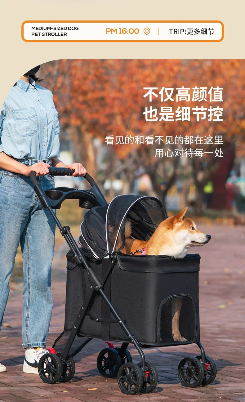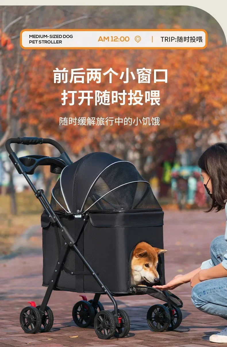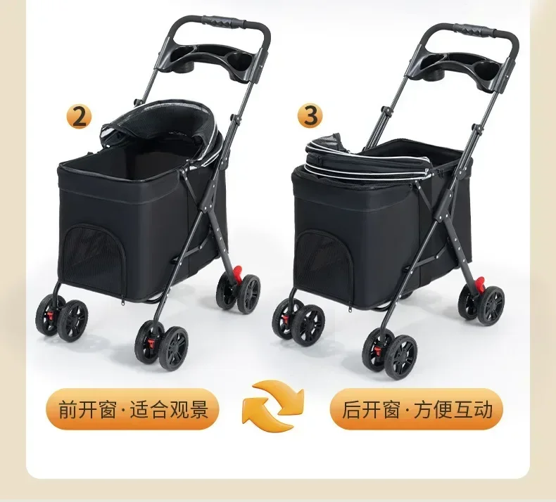 Cochecitos para mascotas medianos y grandes, cochecitos de peluche para perros y gatos, carrito pequeño para mascotas, suministros ligeros y plegables para gatos