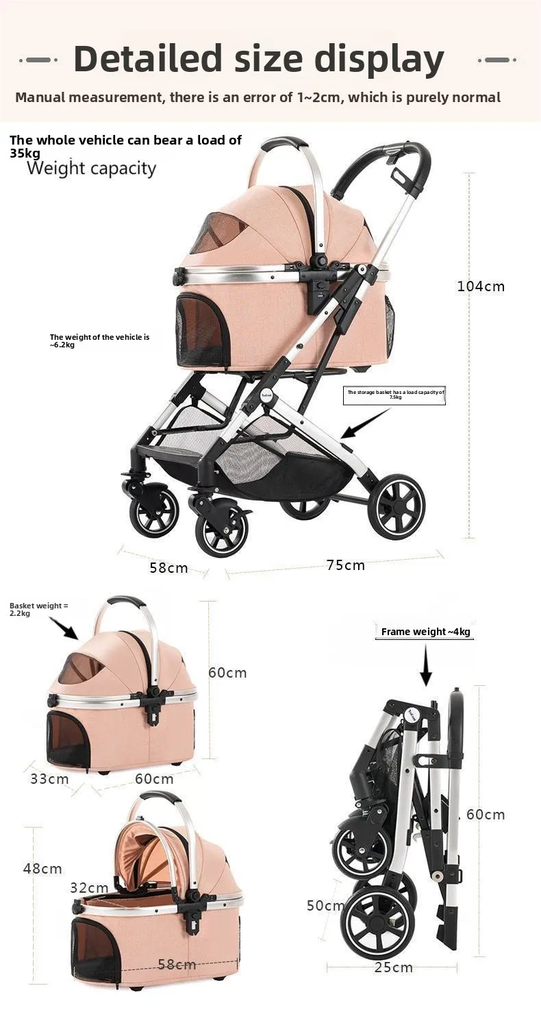 Cochecitos para mascotas, perros que caminan, perros pequeños y medianos, carrito pequeño para gatos, cesta plegable ligera con un solo clic, carrito Separable
