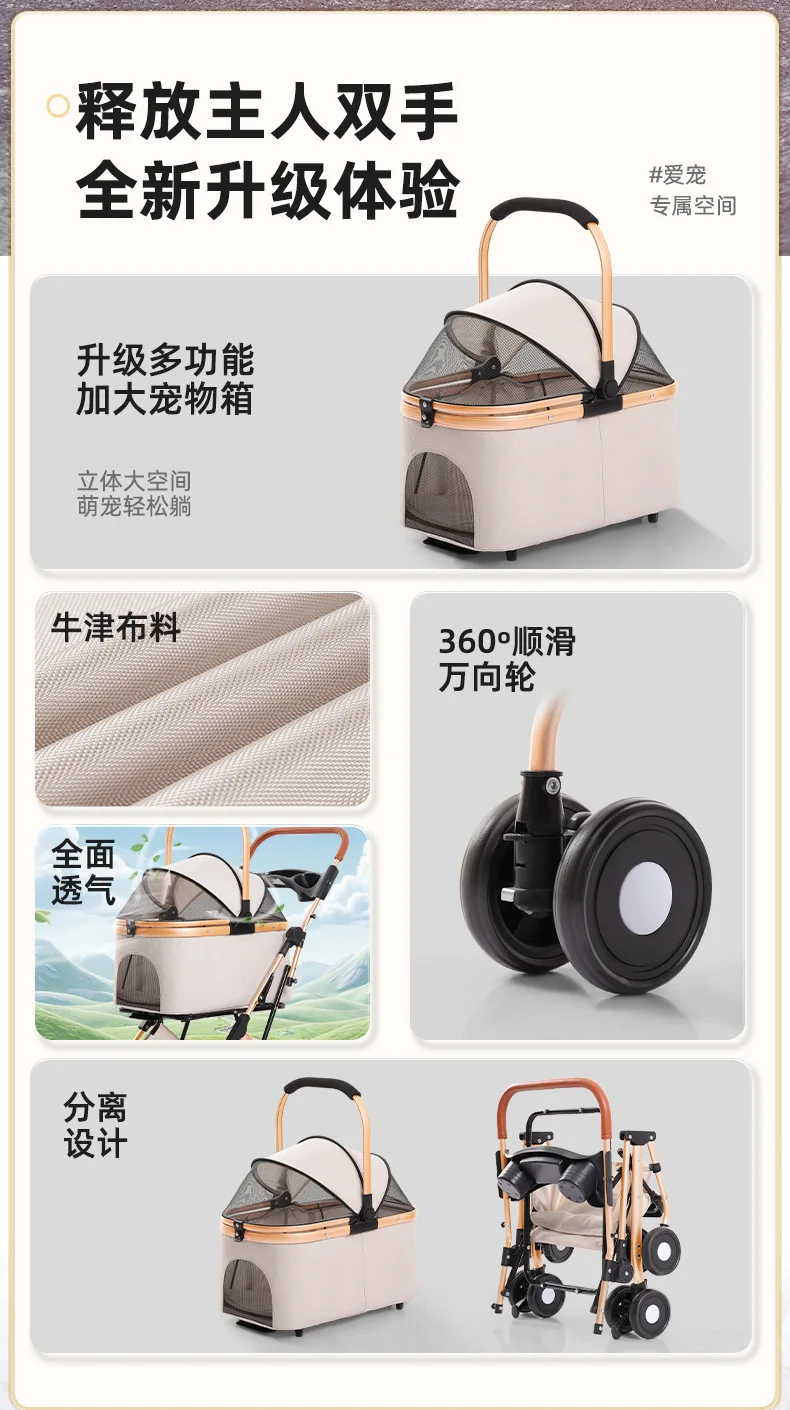 Cochecitos para mascotas plegables, ligeros, medianos y pequeños, bolsa para mascotas, cesta desmontable, carrito para caminar para perros