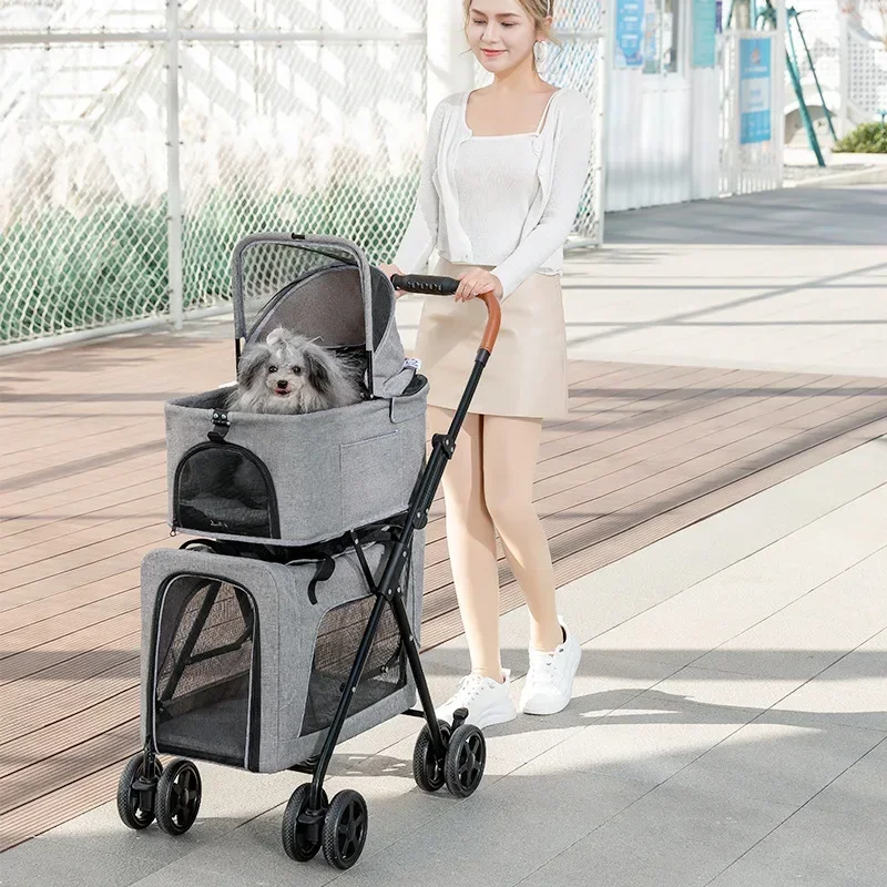 Cochecitos para perros, carrito plegable ligero de doble capa para mascotas, Paparazzi para perros y jaula para gatos desmontable, productos para mascotas