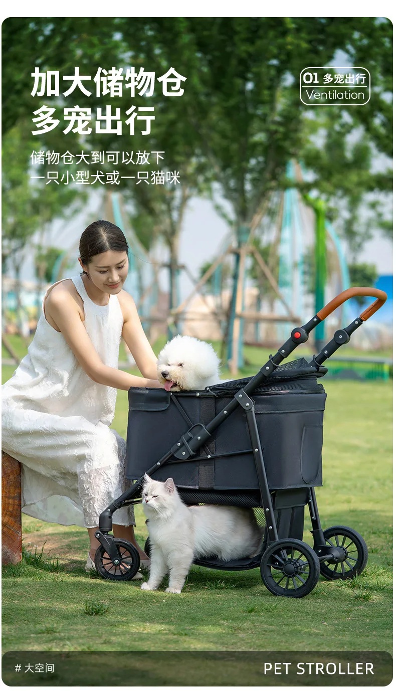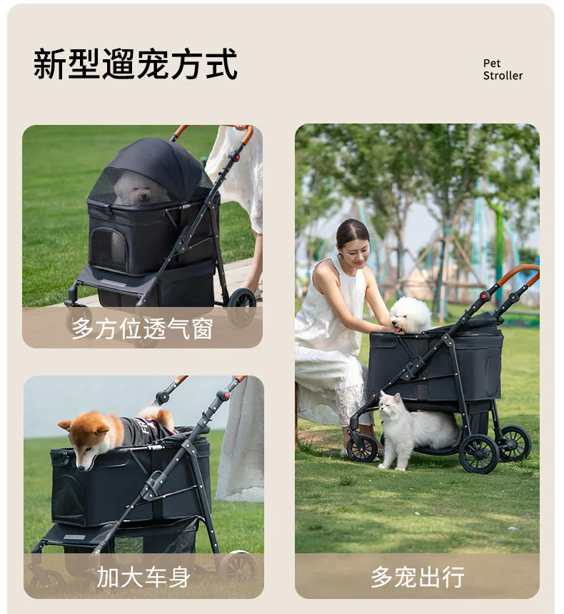 Cochecitos para perros y gatos, cochecitos para bebés de peluche para perros y gatos, carrito para mascotas, ligero y plegable para exteriores