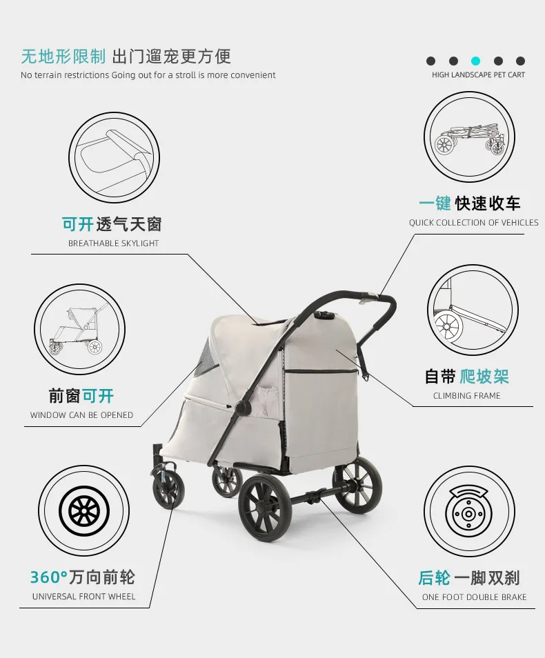 Cochecitos para perros y gatos para personas mayores arriba y abajo al aire libre con cochecitos para mascotas trepadoras, suministros plegables para carrito de perros
