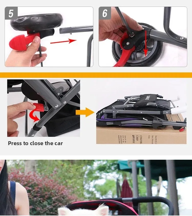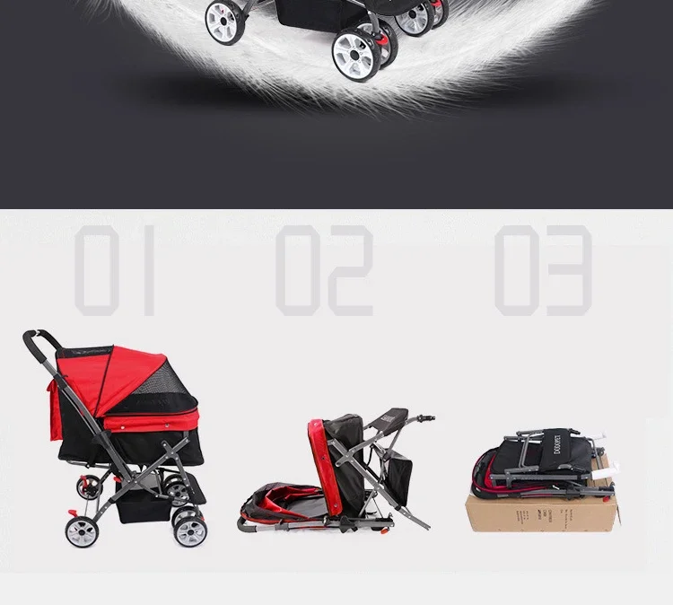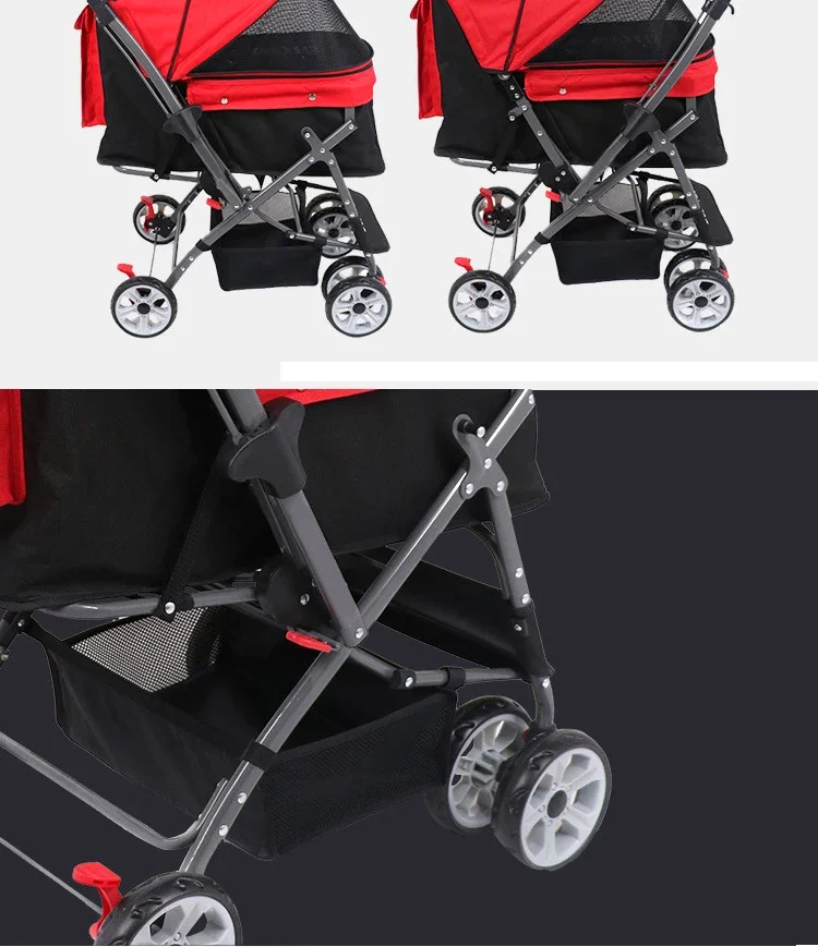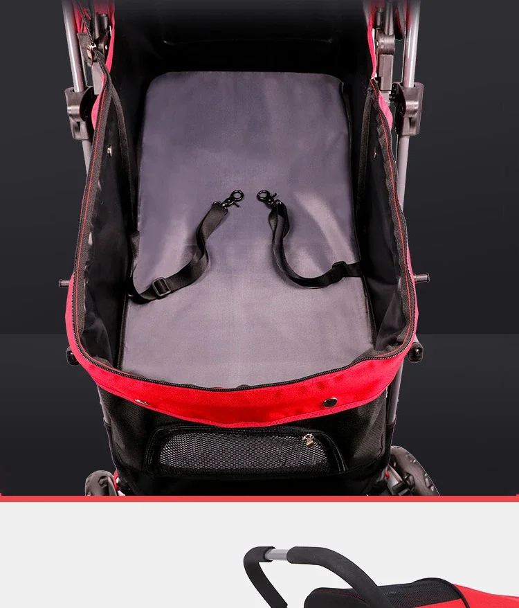 La cubierta del automóvil y la almohadilla de limpieza se pueden quitar y limpiar, lo que es adecuado para lugares de mascotas.Se puede decir que el cochecito es el favorito de los bebés mascota.Puede promocionar hoteles, restaurantes, centros comerciales, parques y metros.