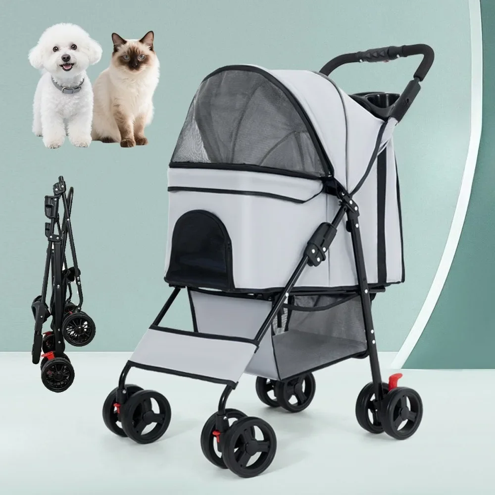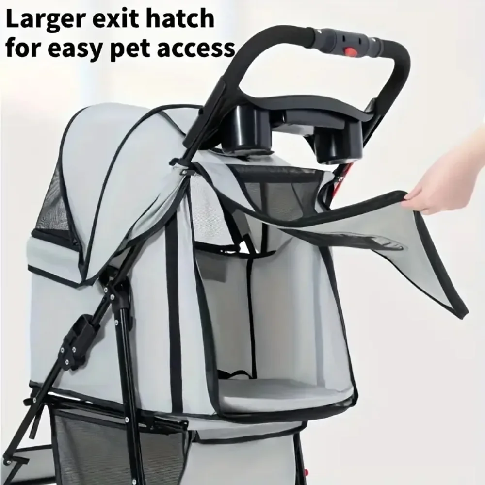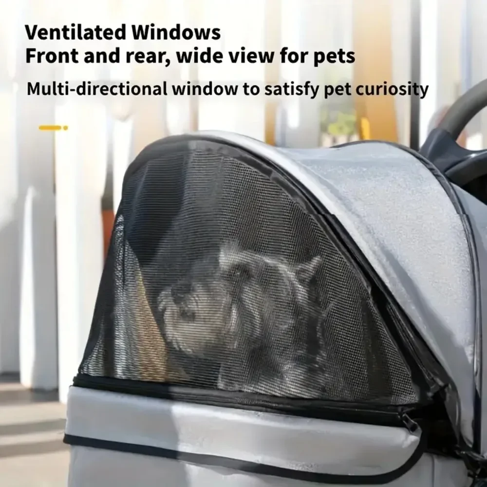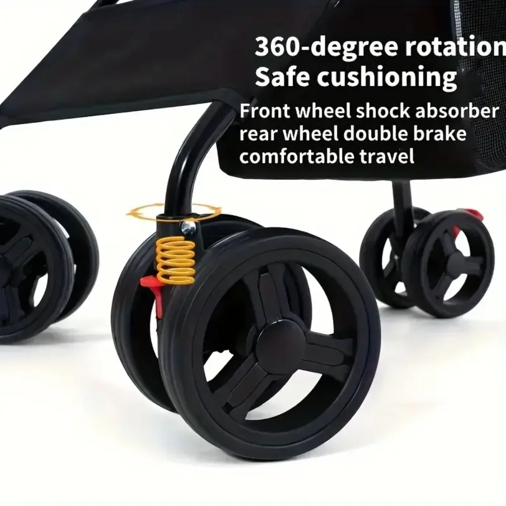 Este cochecito para mascotas le permite a su mascota moverse libremente y descansar tranquilamente.