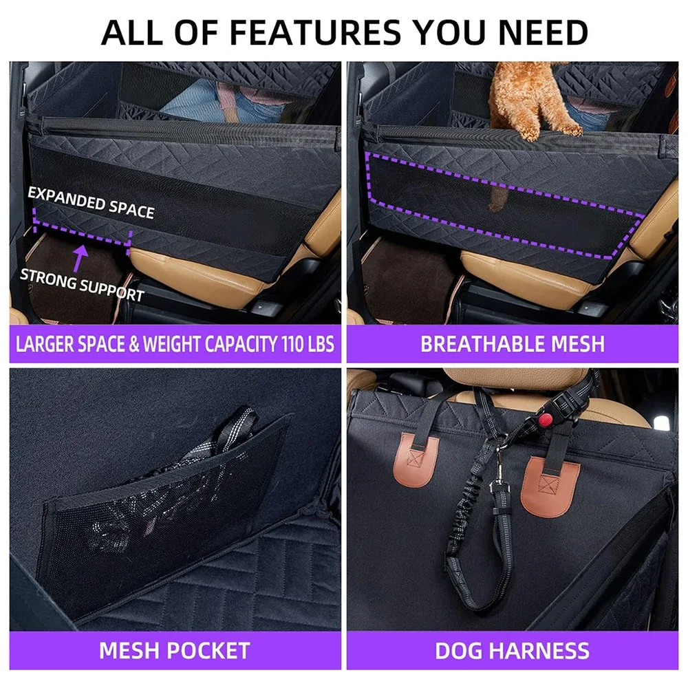 【Extensor del asiento trasero para perros】El asiento para automóvil para perros extiende el espacio en el asiento trasero.El asiento para automóvil grande para perros proporciona un espacio de descanso más grande y cómodo para los perros.