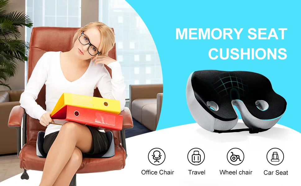Esponja viscoelástica: nuestro cojín para silla de oficina está hecho de una esponja viscoelástica duradera, suave y firme, absorción de impactos y liberación de descompresión, soporte total, no es fácil de deformar después de estar sentado durante mucho tiempo (rebotará lentamente después de 3-5 segundos)., Diseño ergonómico esquelético en forma de U, excelente comodidad y ayuda a aliviar la fatiga muscular