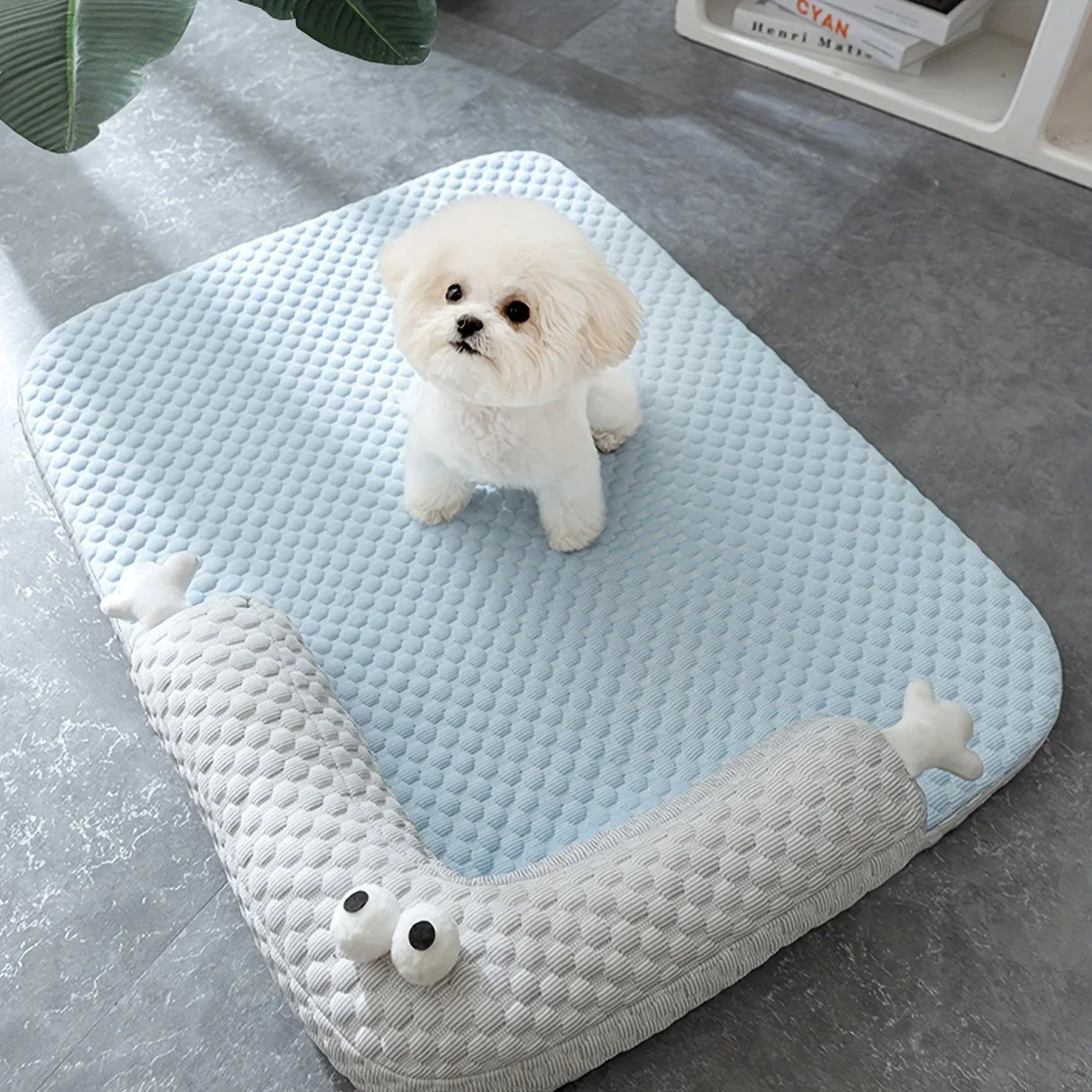 Colchoneta fresca para perros, cama transpirable de ojos grandes para cachorros y gatos pequeños y grandes, nido acogedor y lavable para mascotas con fondo antideslizante
