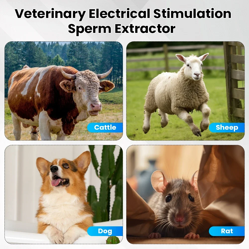Los dispositivos eléctricos portátiles de eyaculación de estimulación se utilizan ampliamente en los campos de la cría y la cría de animales, como la colección de esperma de ganado, pandas, ovejas, ciervos, conejos, perros, cobayas, ratas y ratones, zorros, perros mapaches y otros animales.