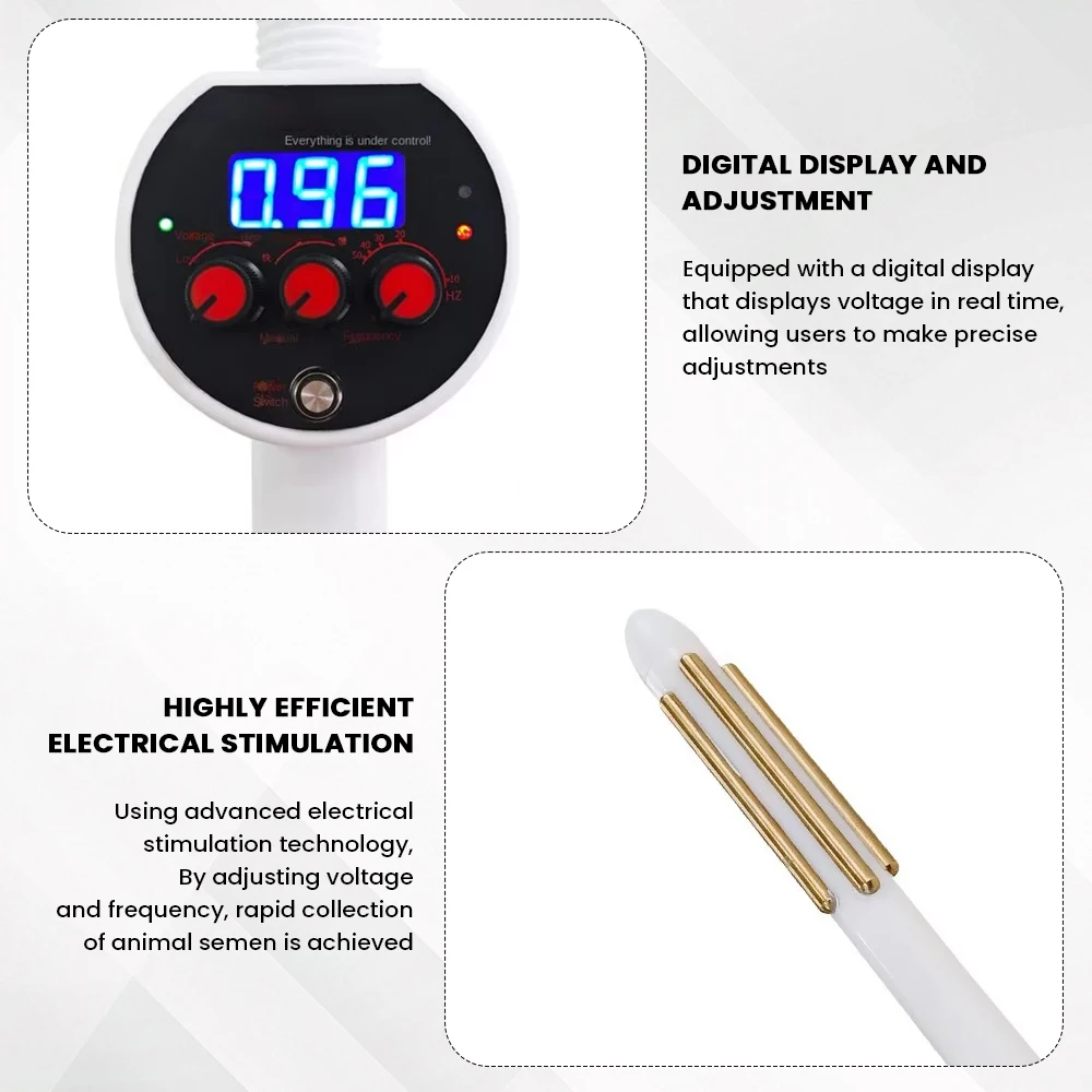 2.Estimulación eléctrica altamente eficiente Utilizando tecnología de estimulación eléctrica avanzada para lograr una rápida recolección de semen animal ajustando el voltaje y la frecuencia.