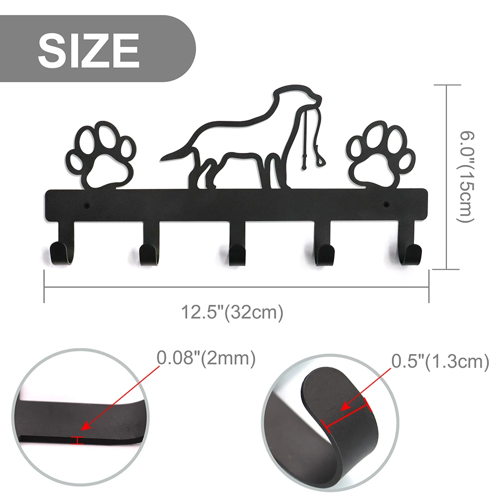 Percha de pared para perros y gatos, perchas de correa de ropa de perro de Metal negro, soporte para llaves, ganchos de rango, perchas de almacenamiento, proveedor de mascotas