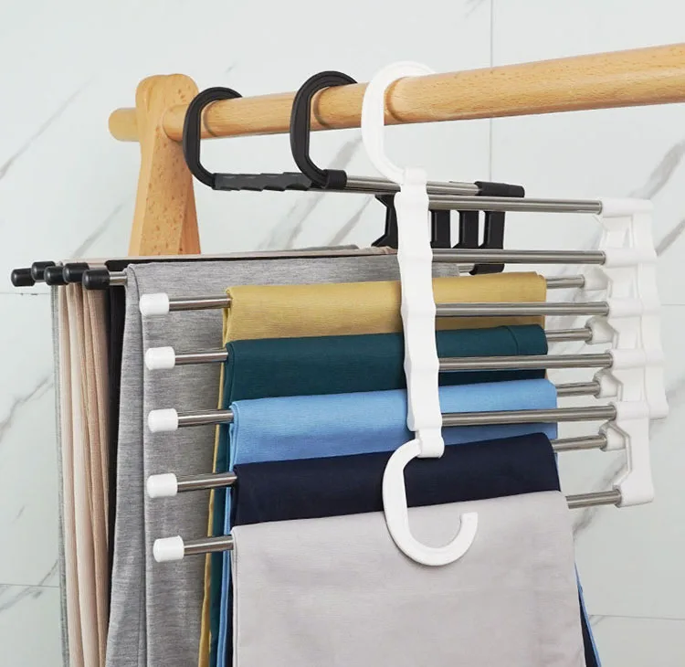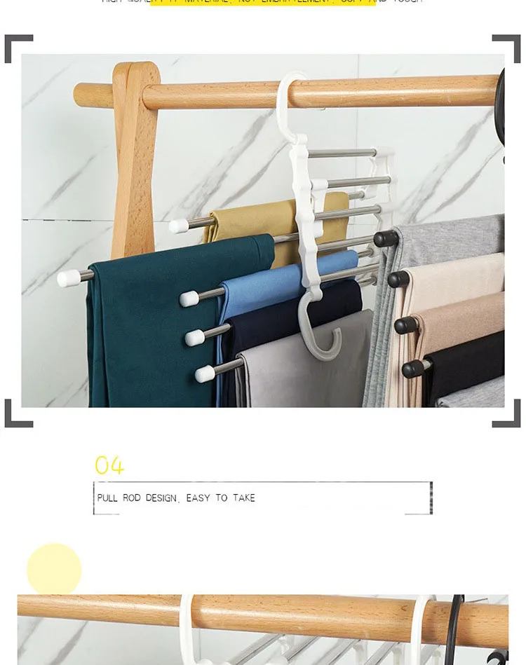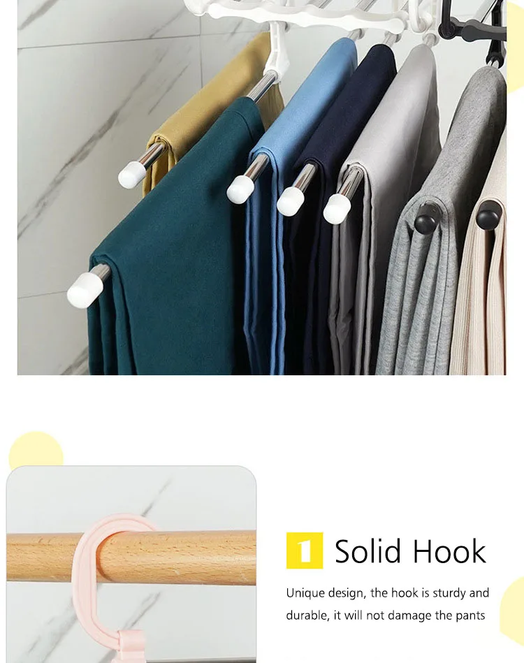 【Transformación del espacio】Cada percha para pantalones se puede colgar para 5 vaqueros/pantalones al mismo tiempo. Ahorre al menos el 80% de espacio y mantenga su armario limpio y ordenado.