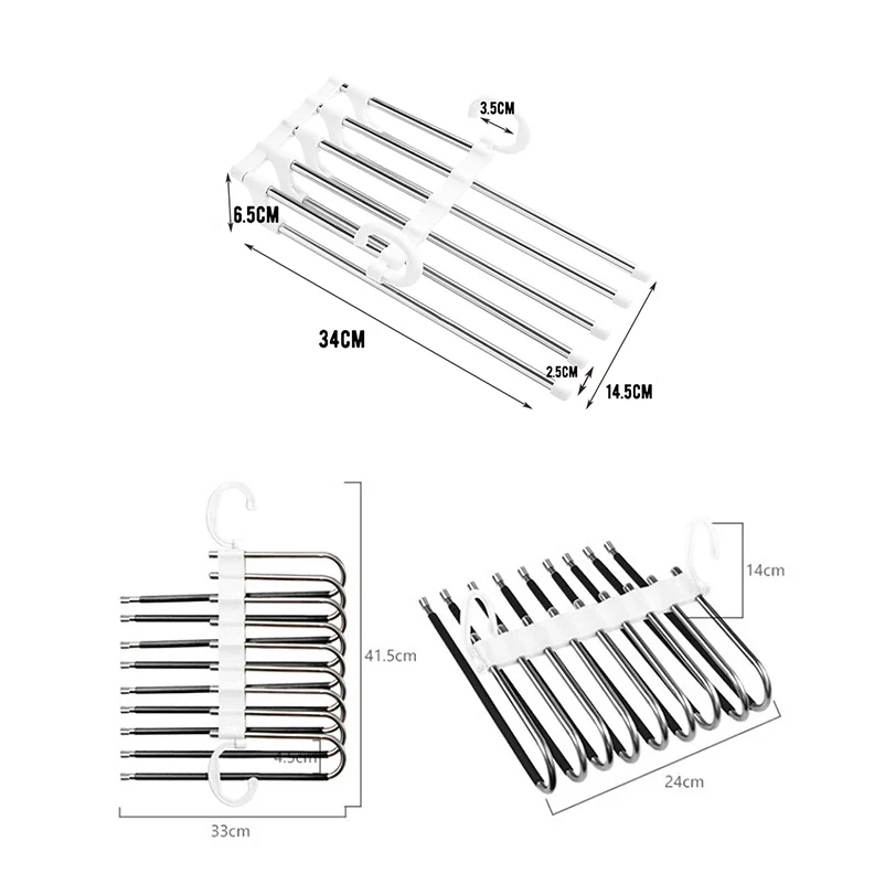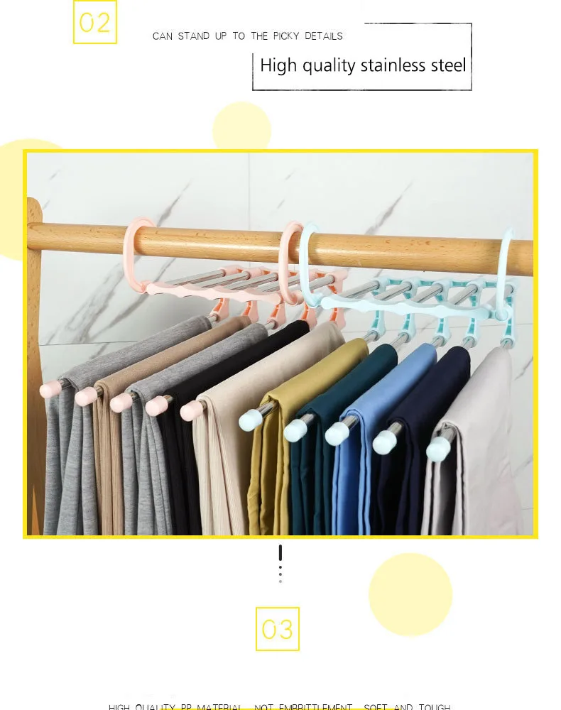 【Material grueso】Nuestras perchas para vaqueros están hechas de acero inoxidable duradero y plástico ABS, sin bordes afilados, elegante y ligero. Mientras tanto, Las perchas son lo suficientemente resistentes incluso si sus pantalones son de gran tamaño.