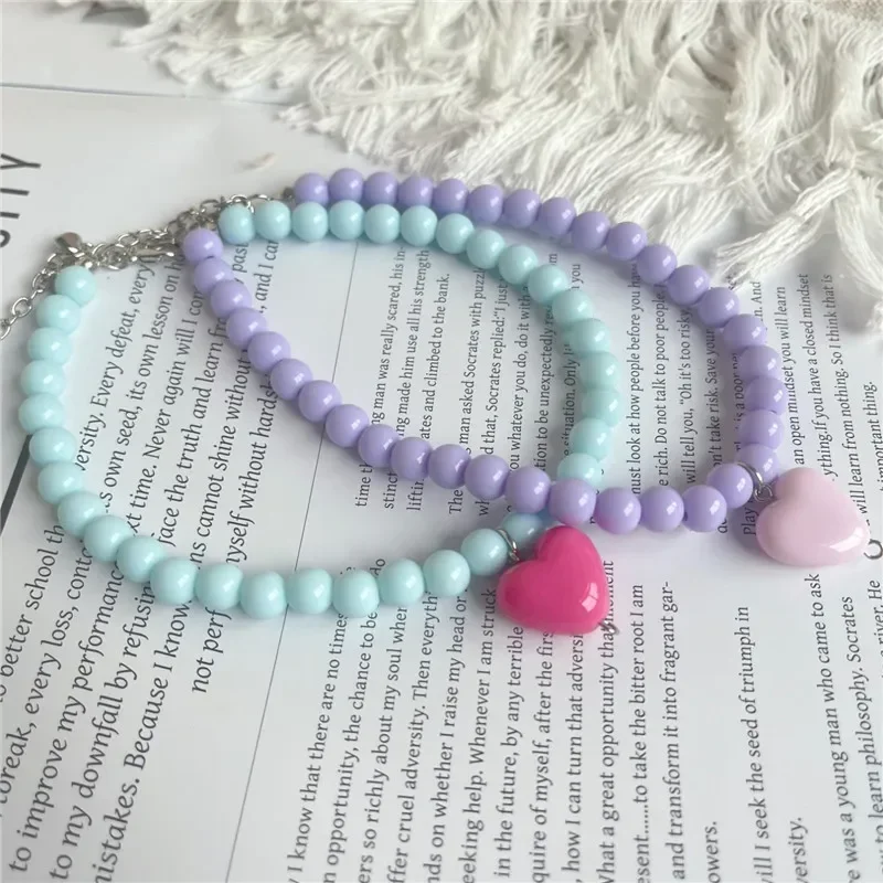 Colgante de corazón ajustable, Collar de perlas para mascotas, Collar de princesa para perros, Collar para gatos, accesorios para cachorros, cadena para perros, joyería para mascotas Chihuahua