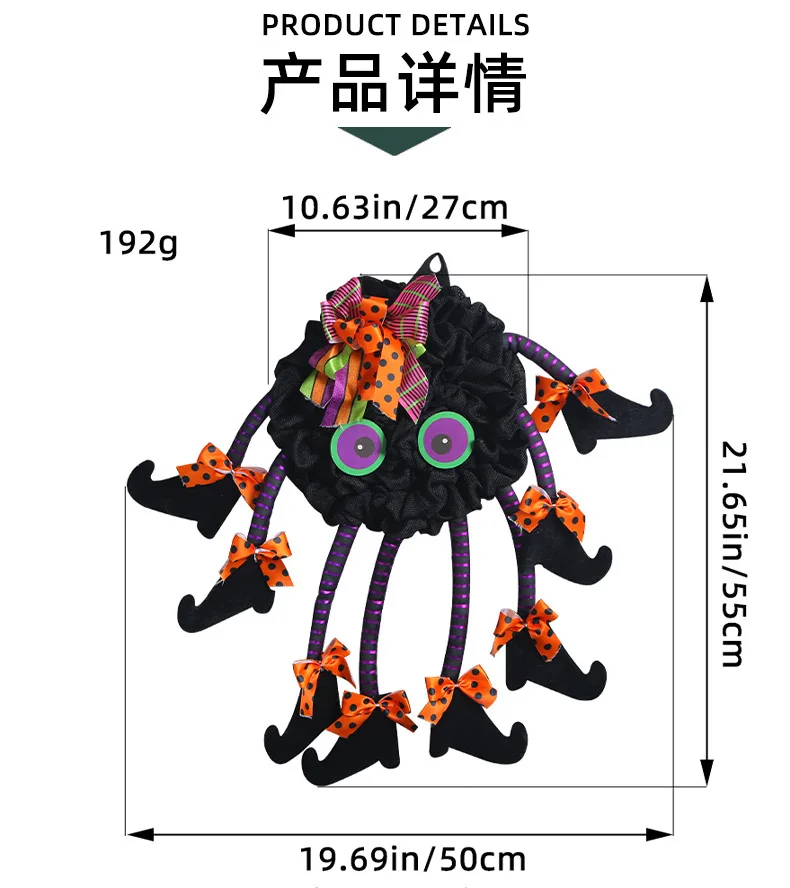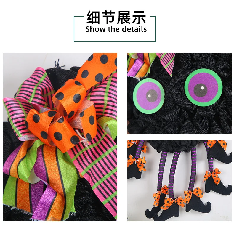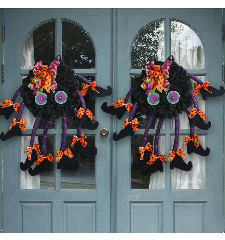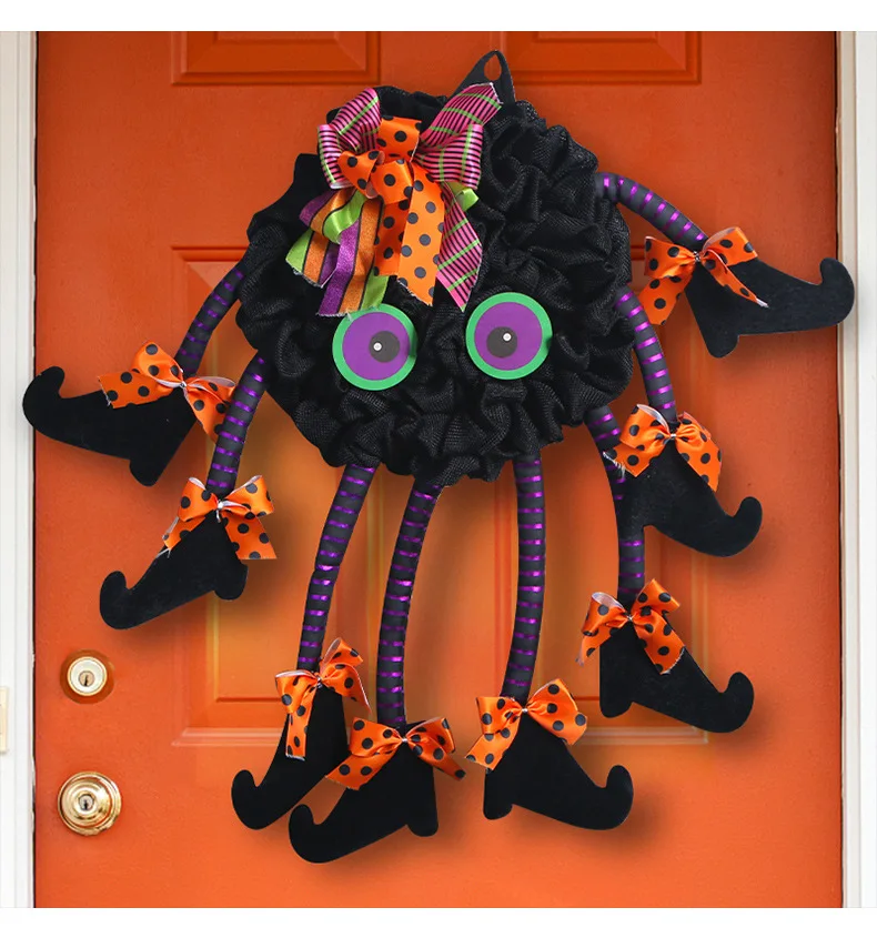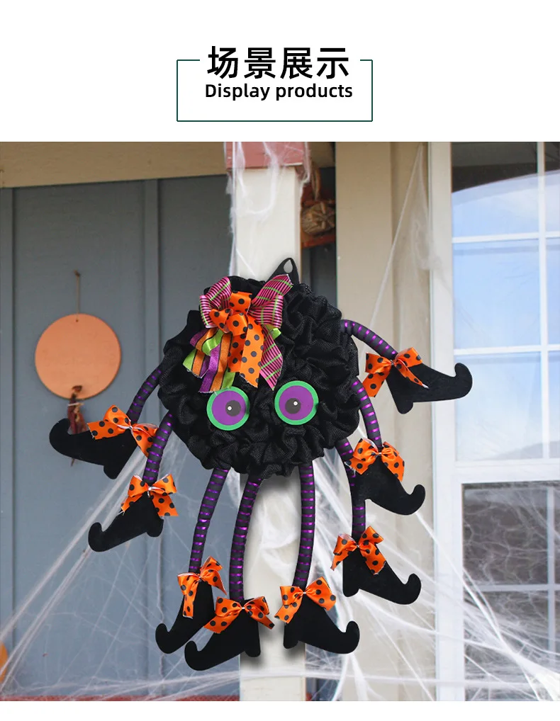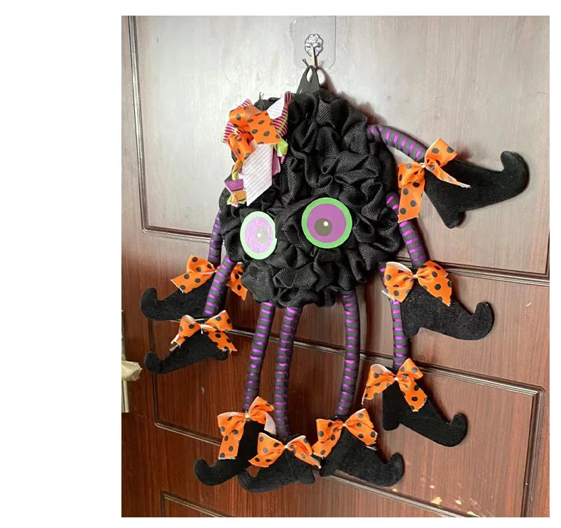 Colgante de corona de bruja de múltiples patas para Halloween, decoración de puerta delantera, accesorios de terror, colgante de puerta decorativo al aire libre, fiesta de vacaciones