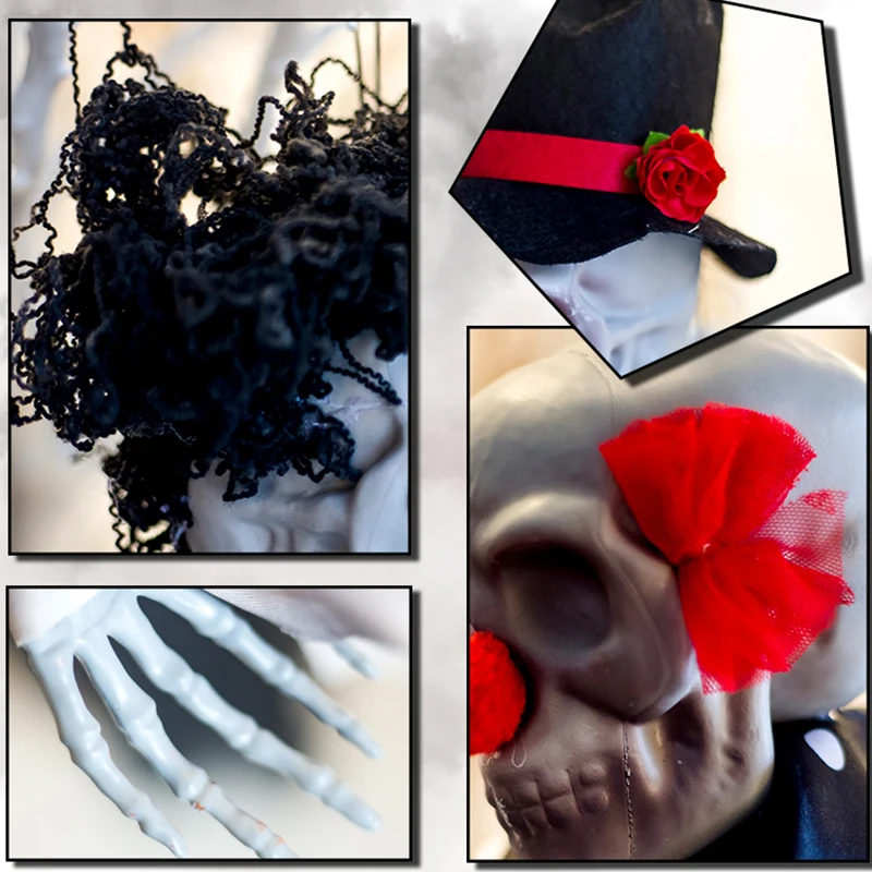 Color: morera negraTamaño: como imagenMaterial: PVC/espuma + telaAplicación: fiesta de Halloween, café, decoración de mesa del hogar.Característica:1.La cara detallada del esqueleto con un velo se ve espeluznante y real: úsela para decorar fiestas de Halloween, casas encantadas o patios para asustar a los trucos o trituradoras o captar la atención de invitados, vecinos y transeúntes.Definitivamente te recordarán con horror cada temporada de Halloween.2.Tenga una cuerda que puede usar para colgarlos para que pueda decorarlos fácilmente: ahorre tiempo y esfuerzo decorando para crear una atmósfera instantánea llena de diversión y que despierta el cabello.3.La tela es poliéster, resistente al agua, a la intemperie y a los productos químicos.Durabilidad y longevidad garantizadas.Añádelo a tus espeluznantes colecciones de decoración para tu hogar u oficina.4.Hecho de plástico de buena calidad que es increíblemente fuerte y resistente a productos químicos, sin olores desagradables.Decoración colgante de Halloween de larga duración que puedes reutilizar el Segundo año para ahorrar costos de decoración.Nota 1: Envíenos un correo electrónico si tiene algo, haremos todo lo posible para servirle.Nota 2: El color puede ser un poco diferente dependiendo de su monitor.