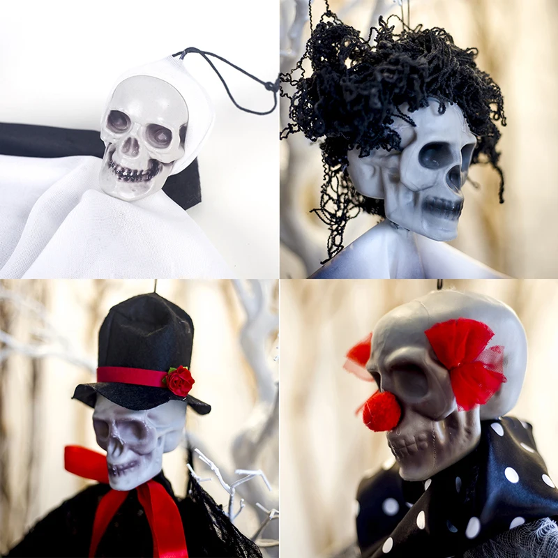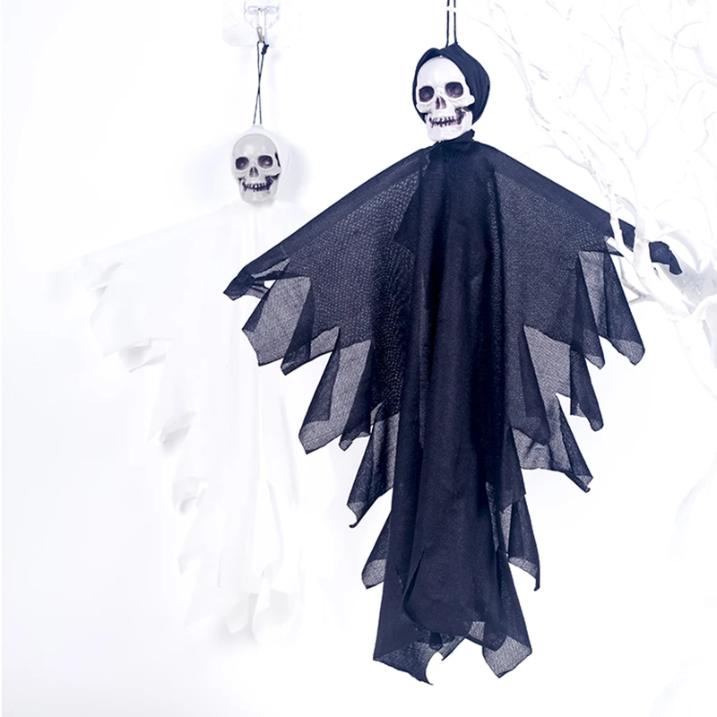 Colgante de esqueleto aterrador, cara de calavera colgante, fantasma, decoración del hogar de Halloween, casa embrujada de terror, Bar, muñeca de tela, adorno de Navidad