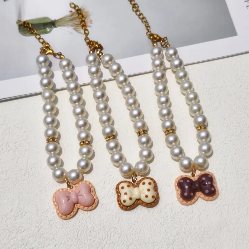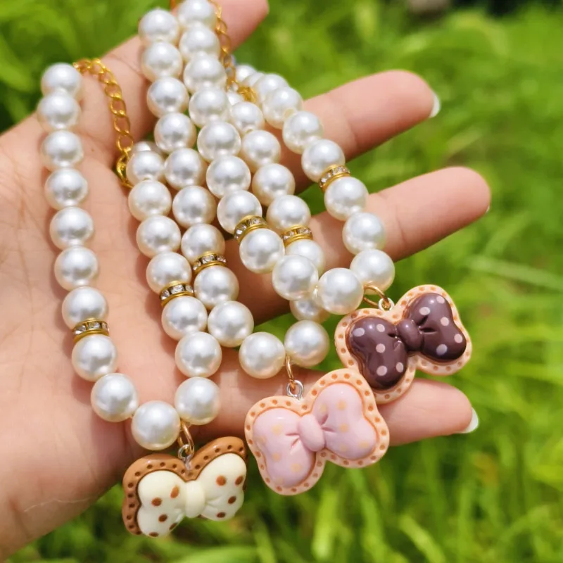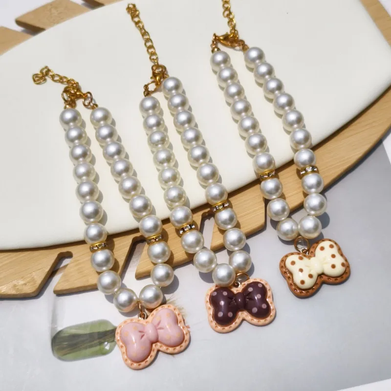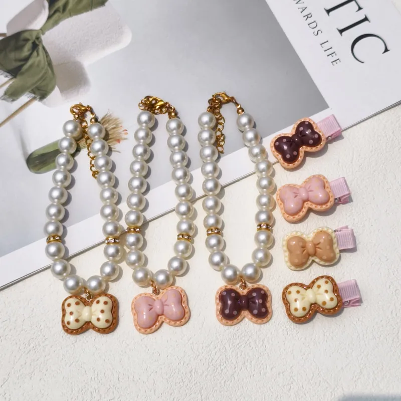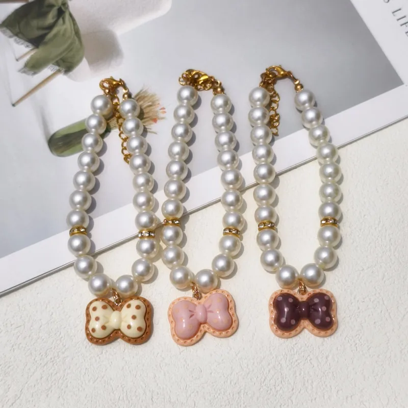 Colgante de lazo Vintage, bufanda para mascotas, joyería, Collar para gato, Collar para perro, Collar de perlas para mascota, bonito accesorio de horquilla para perro