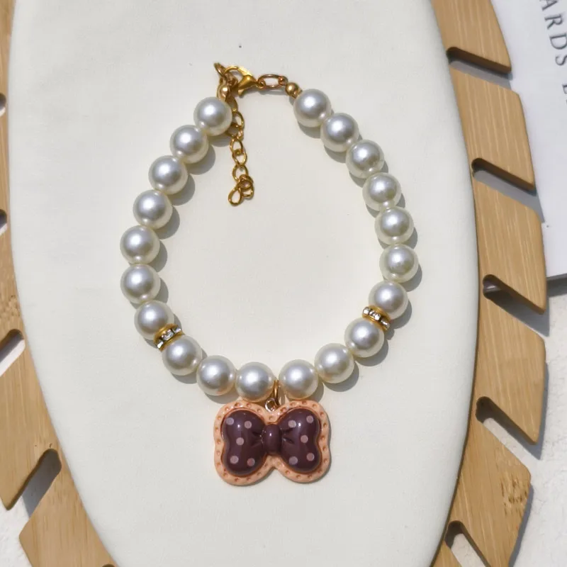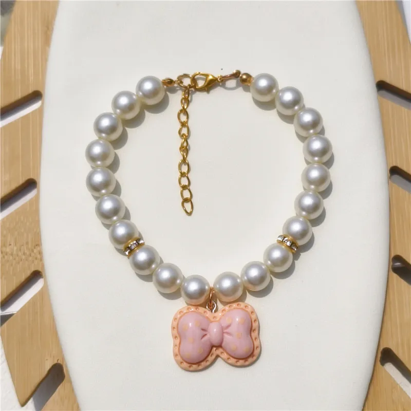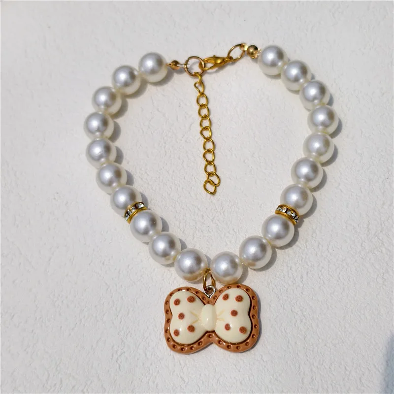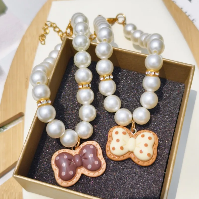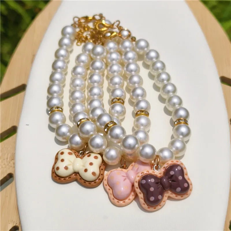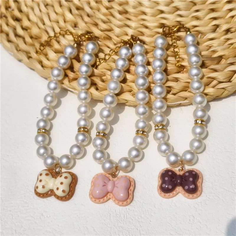 Colgante de lazo Vintage, bufanda para mascotas, joyería, Collar para gato, Collar para perro, Collar de perlas para mascota, bonito accesorio de horquilla para perro
