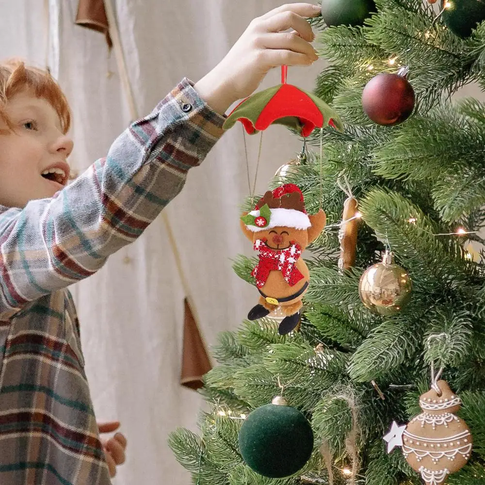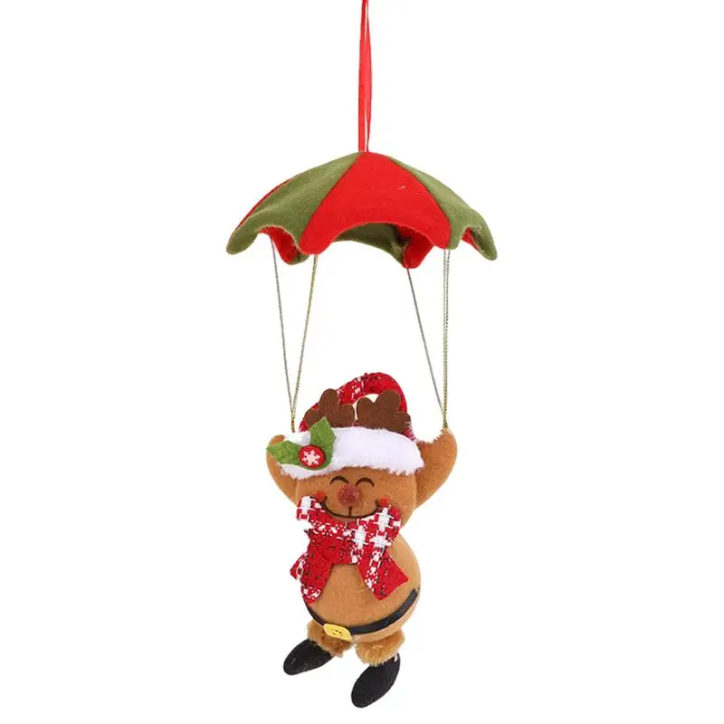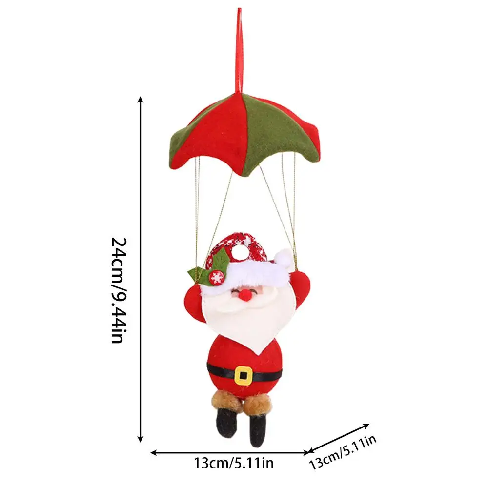 1. Delicia festiva: nuestra muñeca de Papá Noel con muñeco de nieve y paracaídas navideña con forma de Papá Noel, muñecos de nieve y ciervos crea un fuerte ambiente festivo.Decoración perfecta para realzar la alegría navideña con un toque extra.
