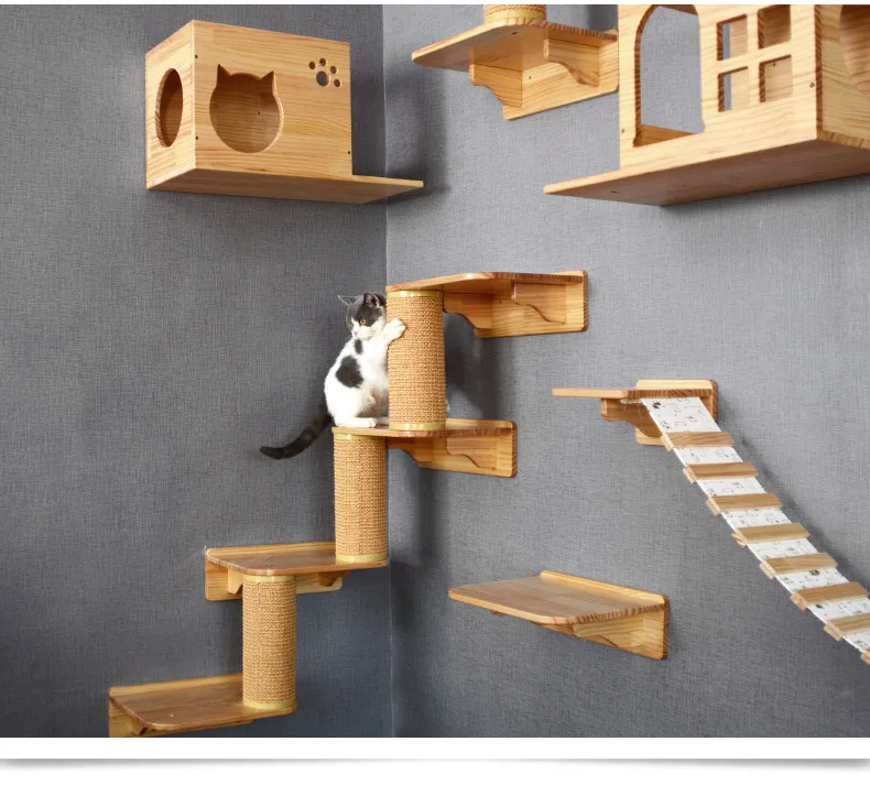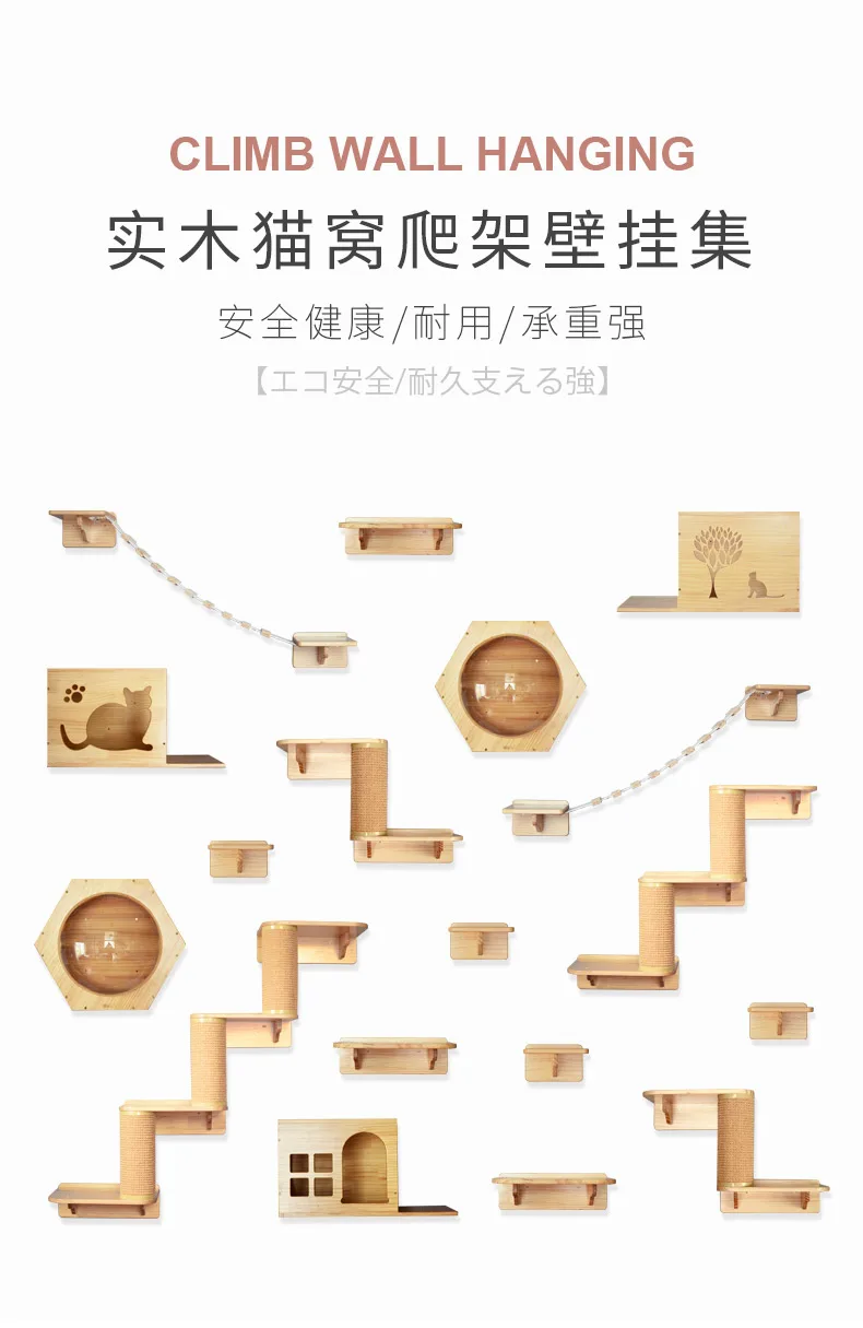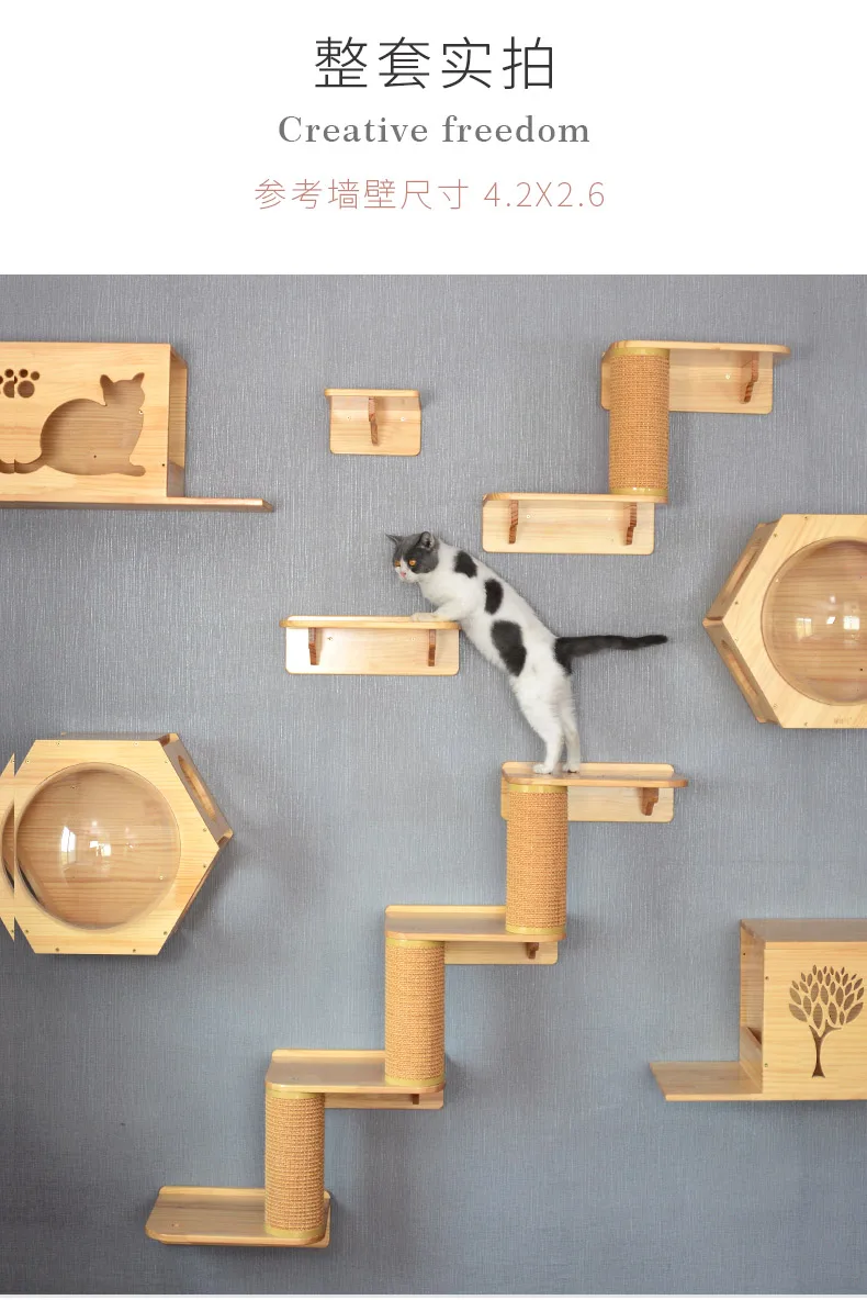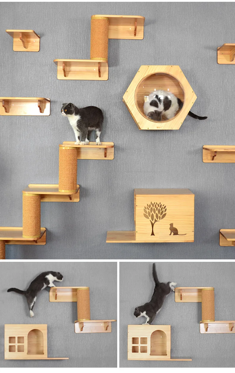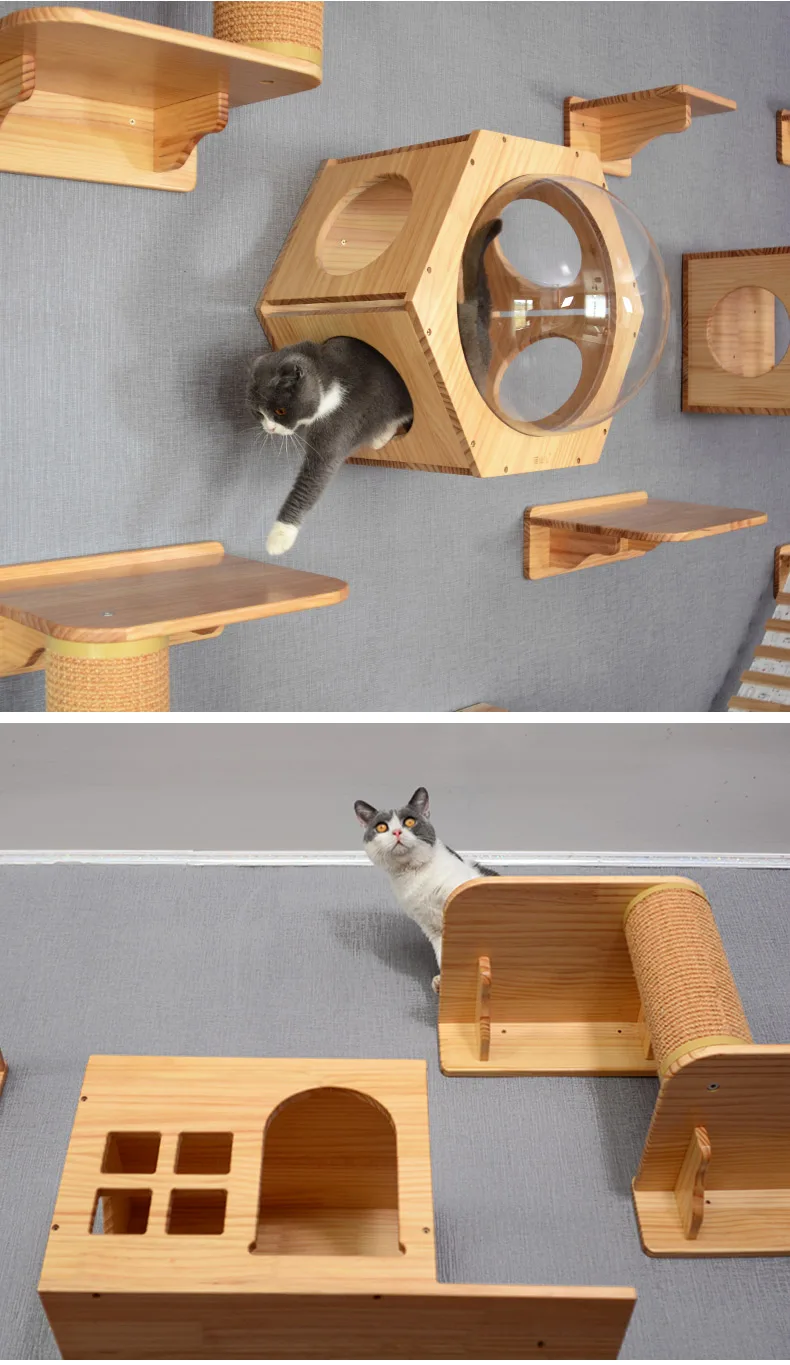 Colgante de pared para gato, marco de escalada para gato, cabaña hexagonal de madera maciza, muebles para mascotas