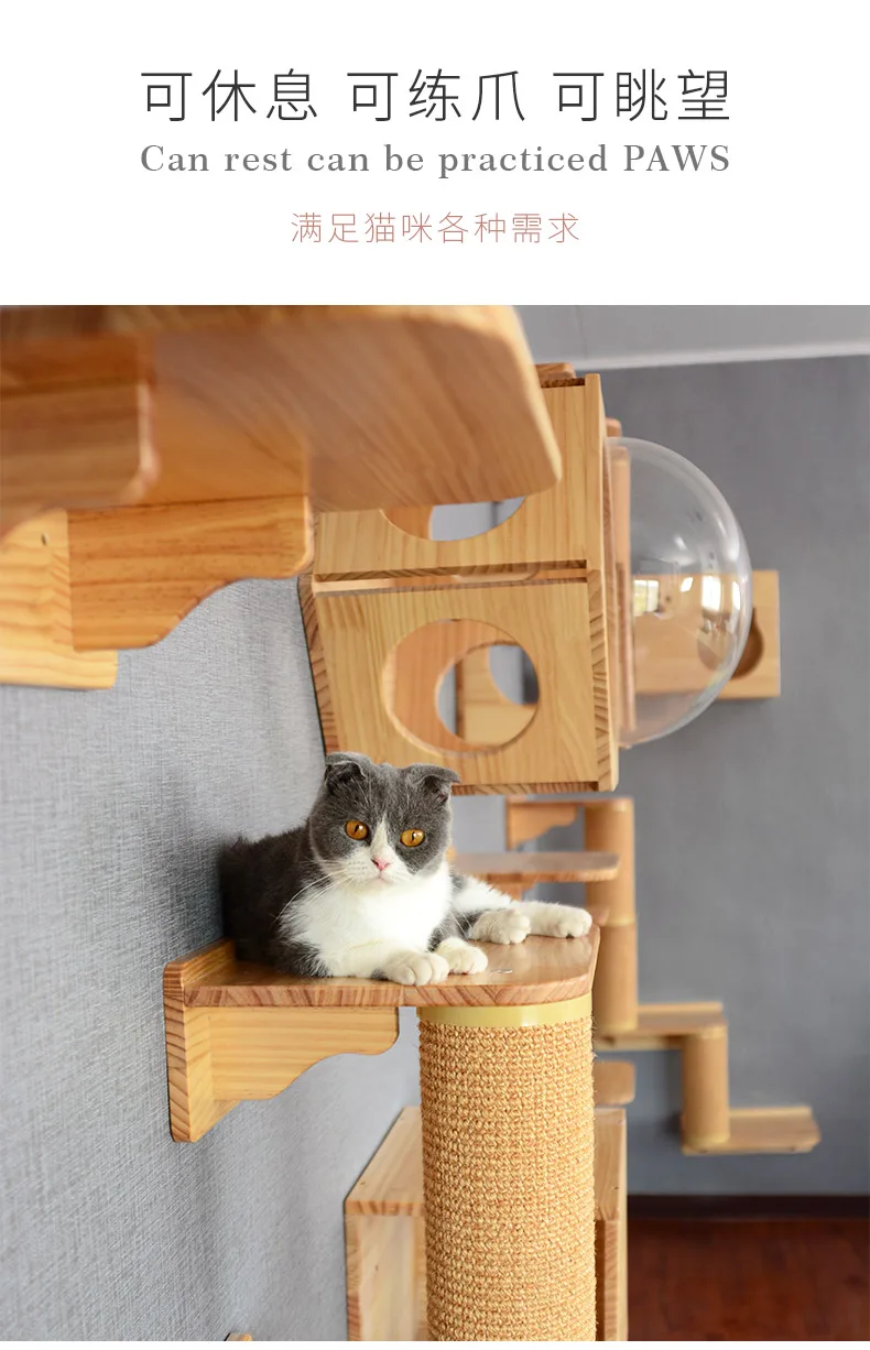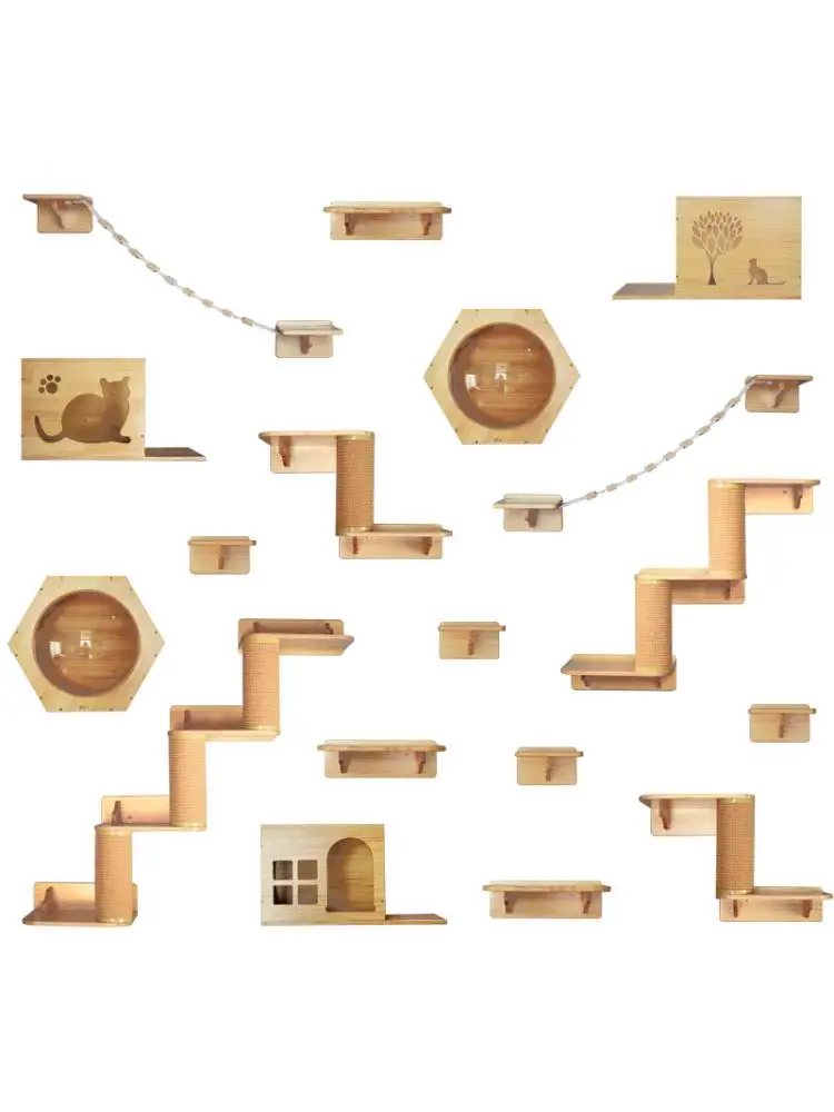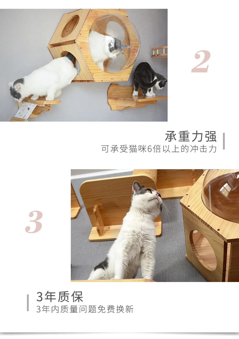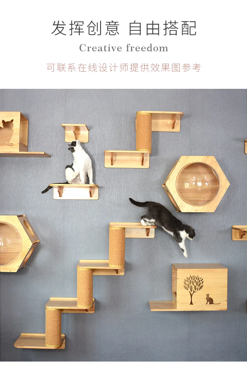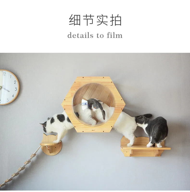 Colgante de pared para gato, marco de escalada para gato, cabaña hexagonal de madera maciza, muebles para mascotas