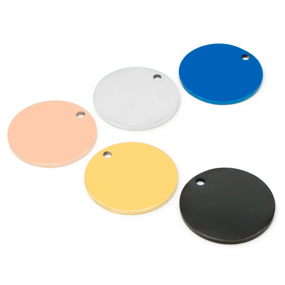 Venta al por mayor 20 unids/lote colgante de acero inoxidable redondo en blanco Etiqueta de perro collar joyería hacer llavero Accesorios