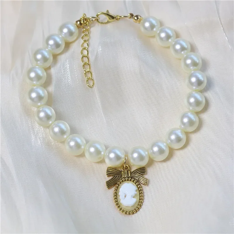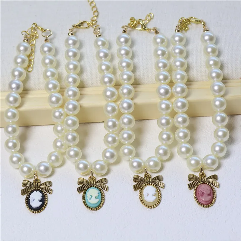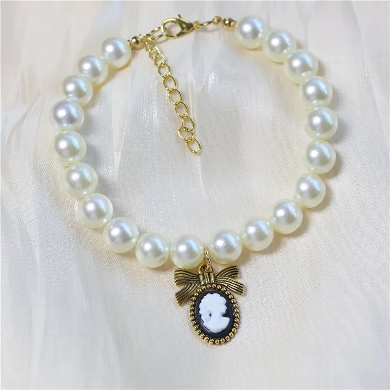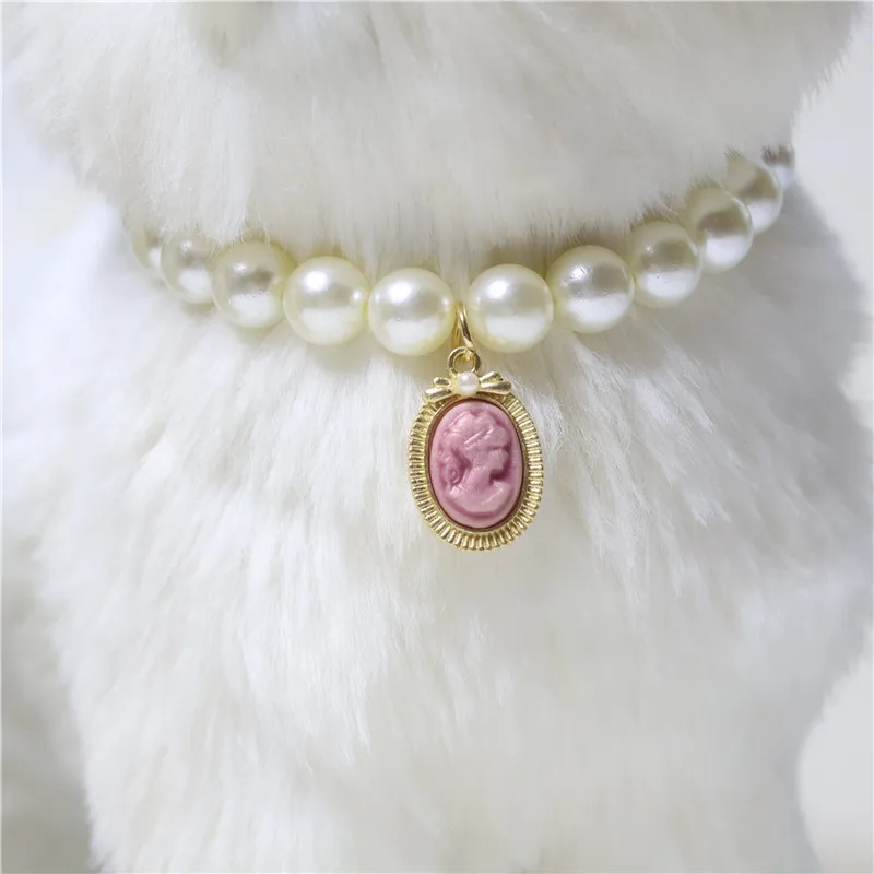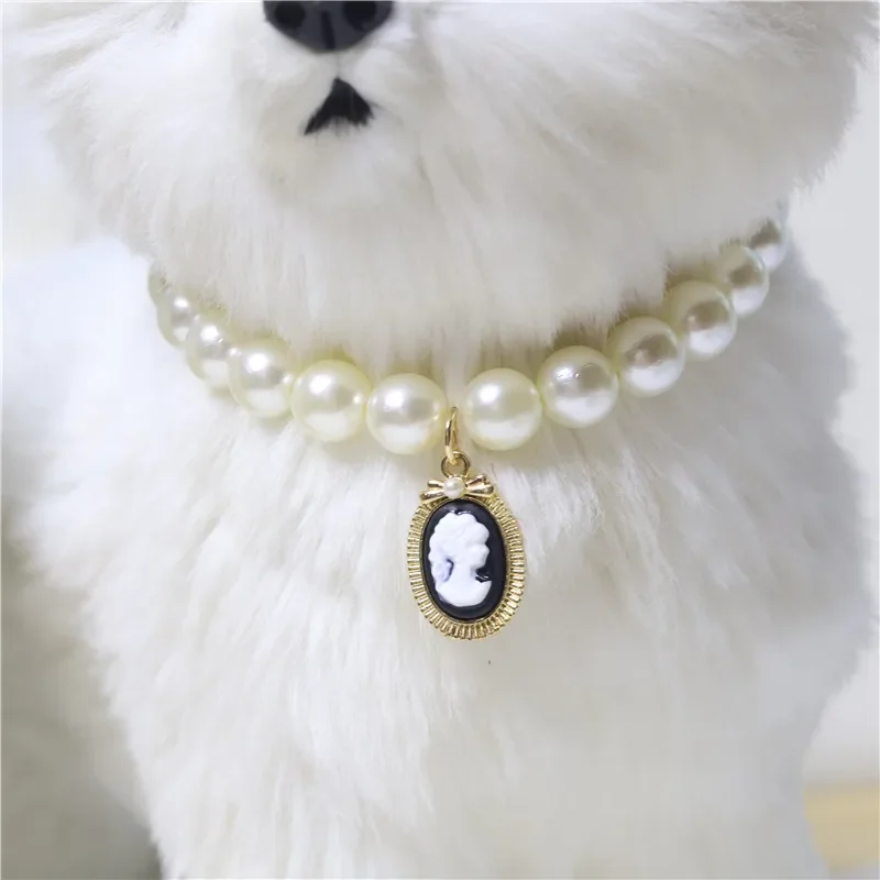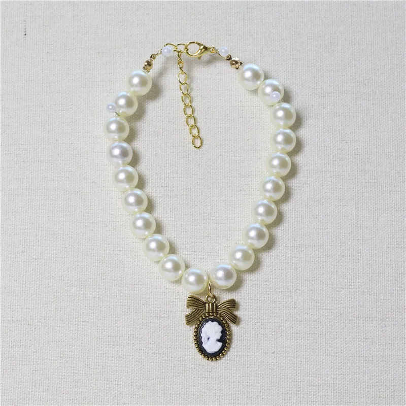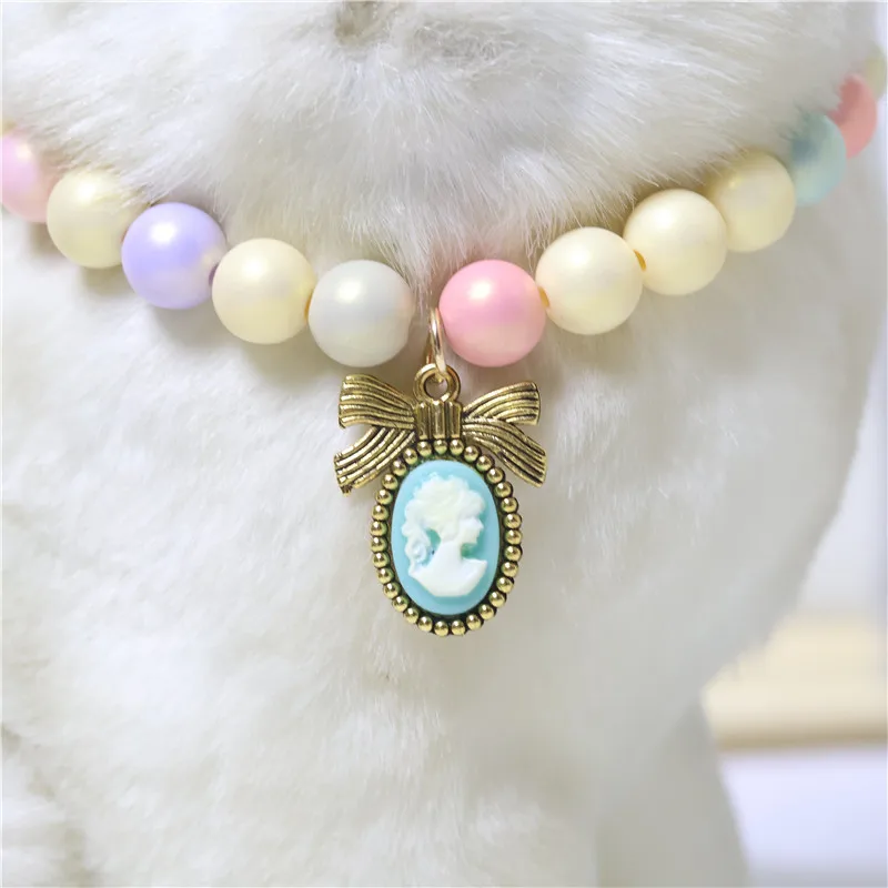 Colgante con retrato Vintage, Collar de perlas para mascotas, lazo Retro de lujo, Collar para perro y gato, accesorio para el cuidado de mascotas