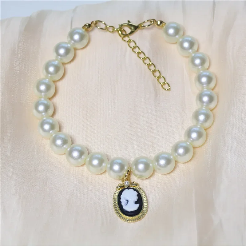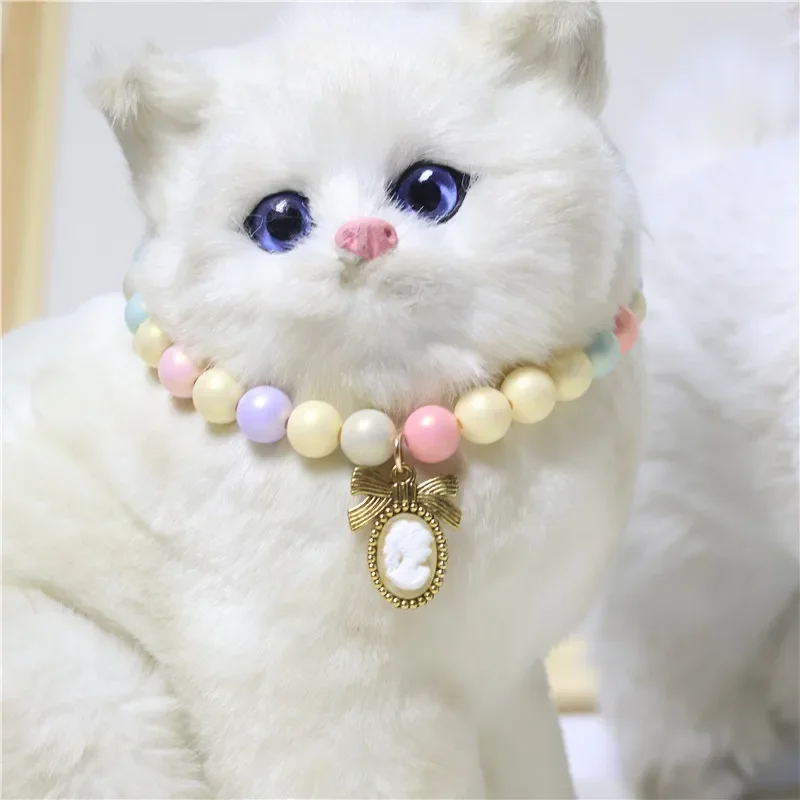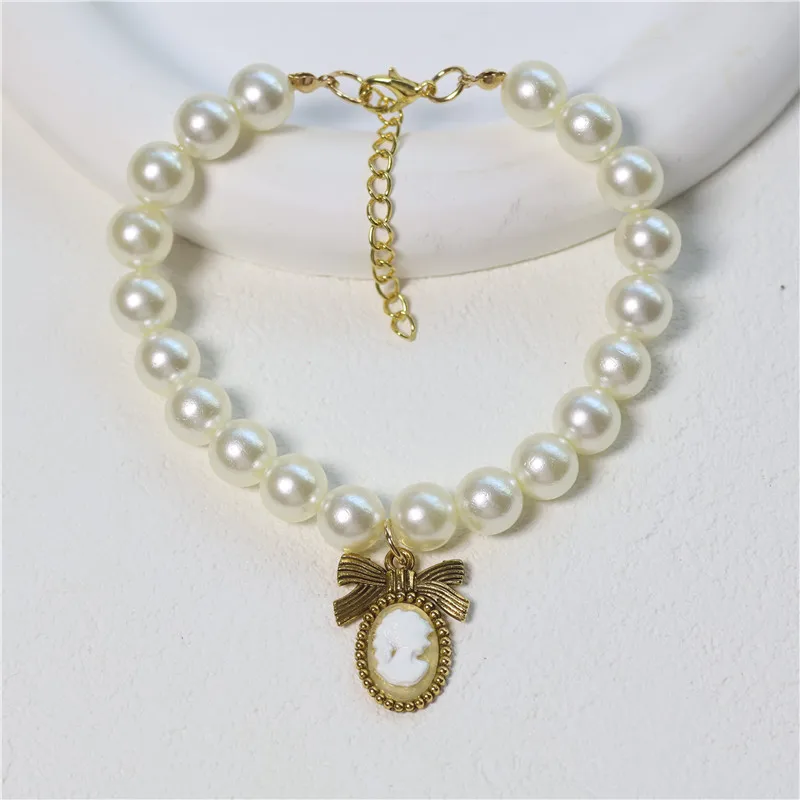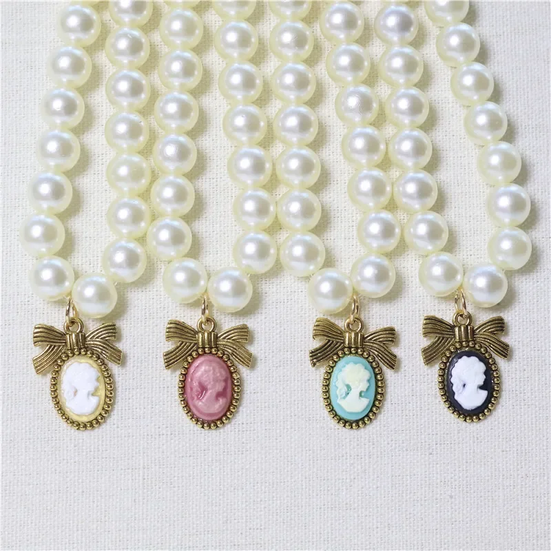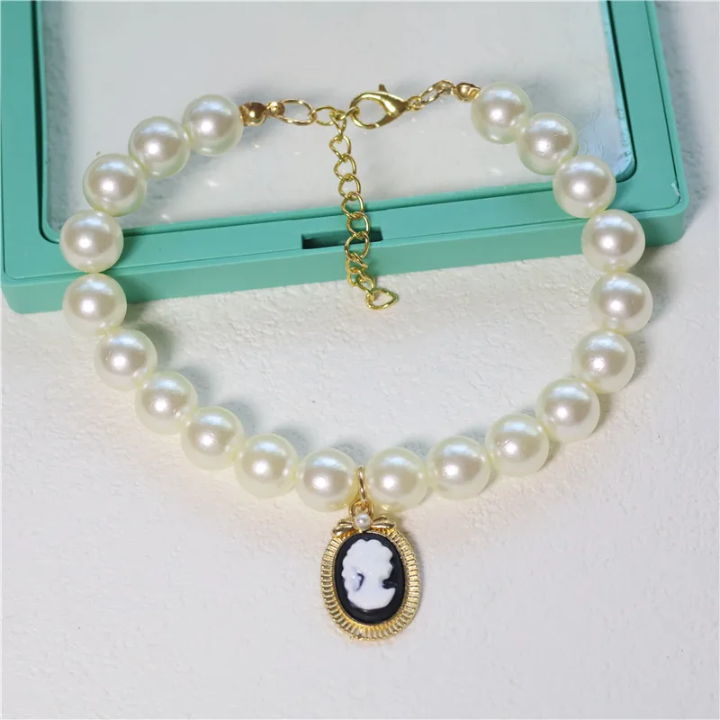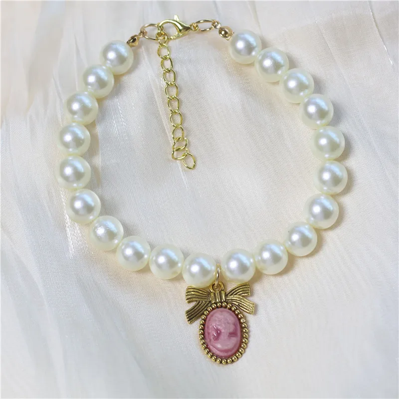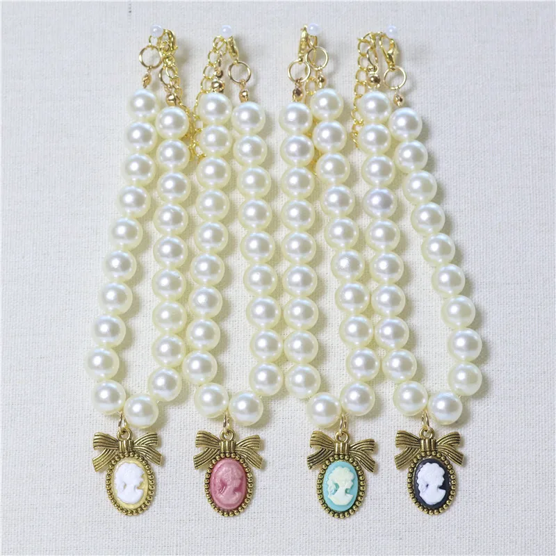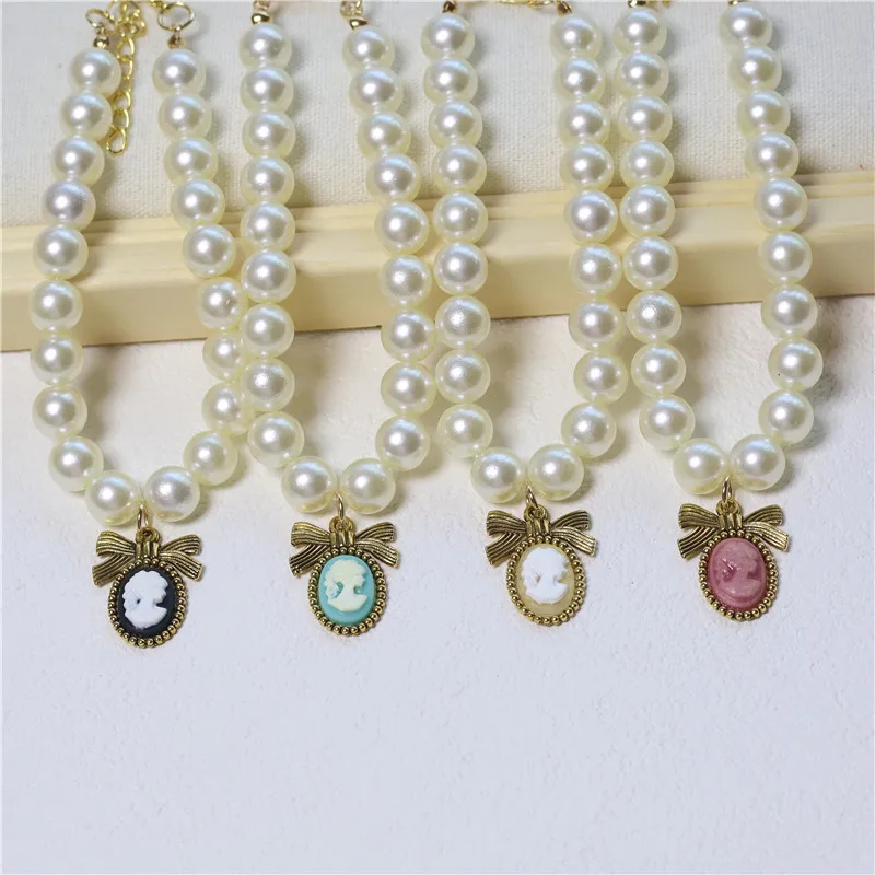Colgante con retrato Vintage, Collar de perlas para mascotas, lazo Retro de lujo, Collar para perro y gato, accesorio para el cuidado de mascotas