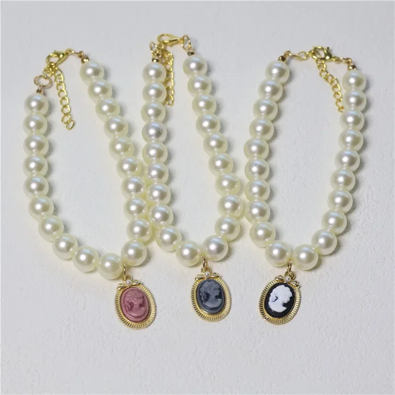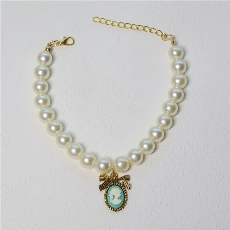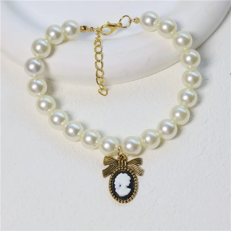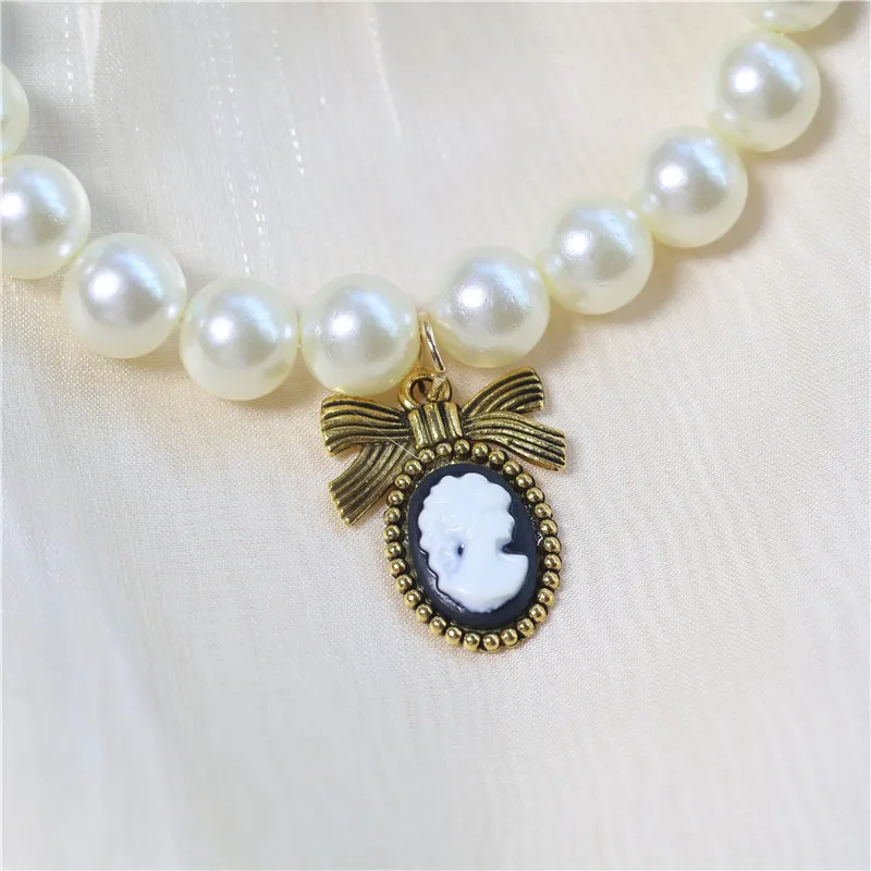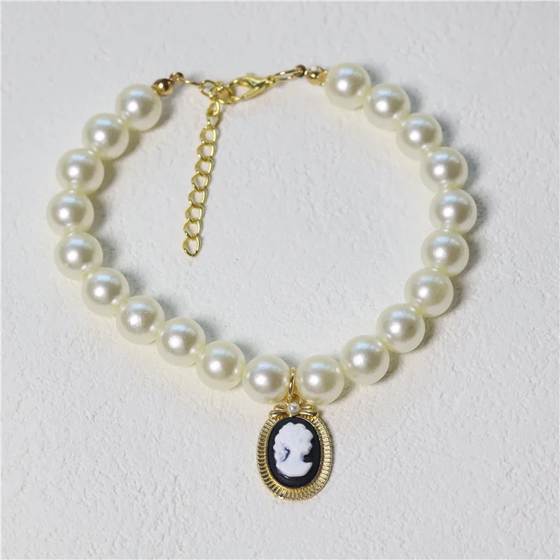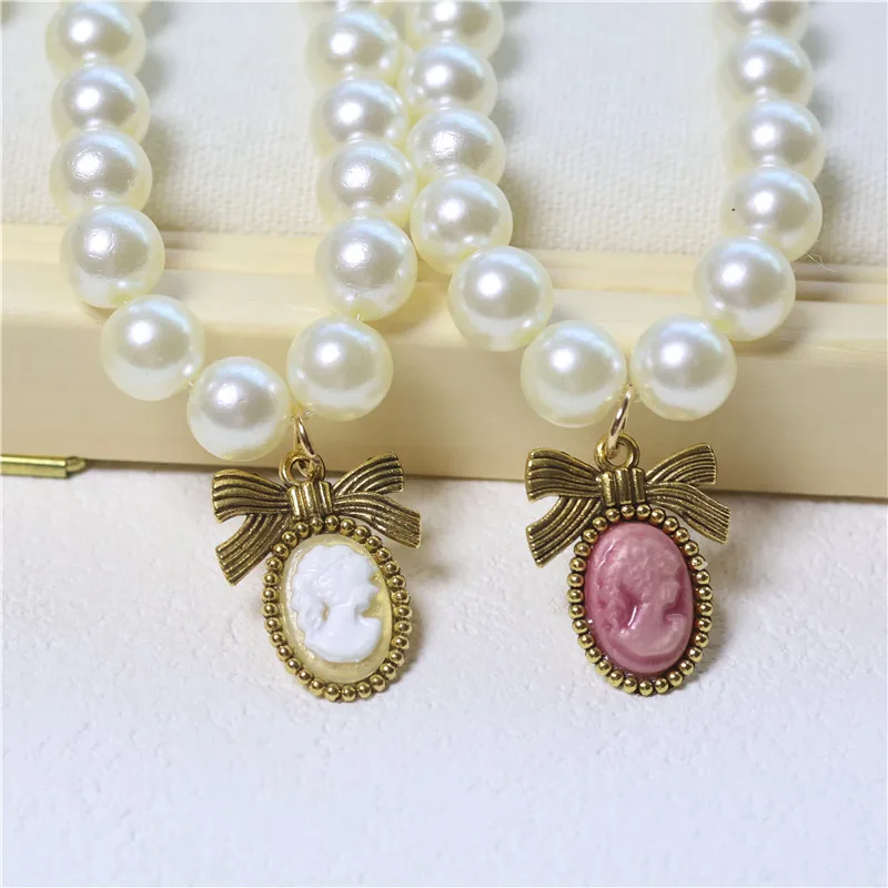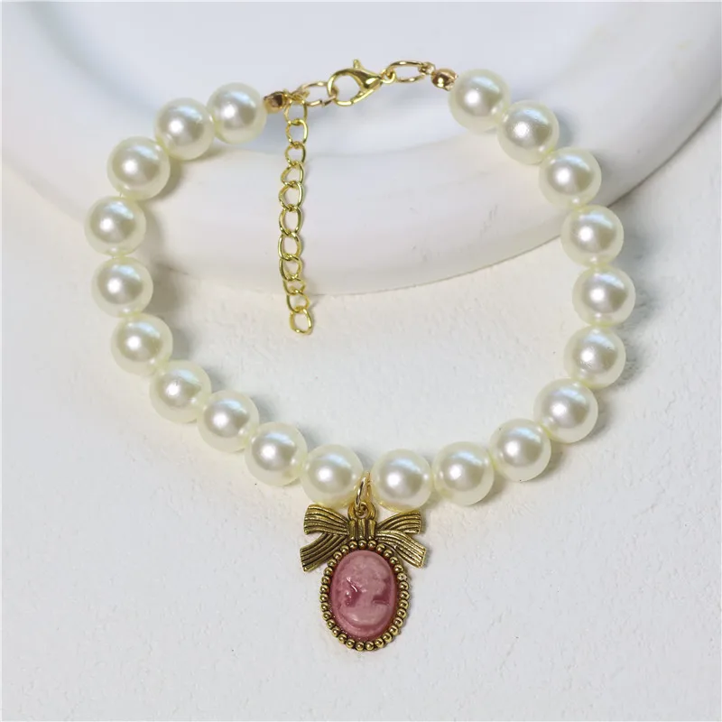Colgante con retrato Vintage, Collar de perlas para mascotas, lazo Retro de lujo, Collar para perro y gato, accesorio para el cuidado de mascotas