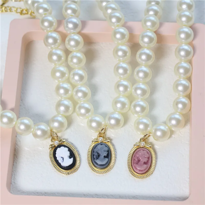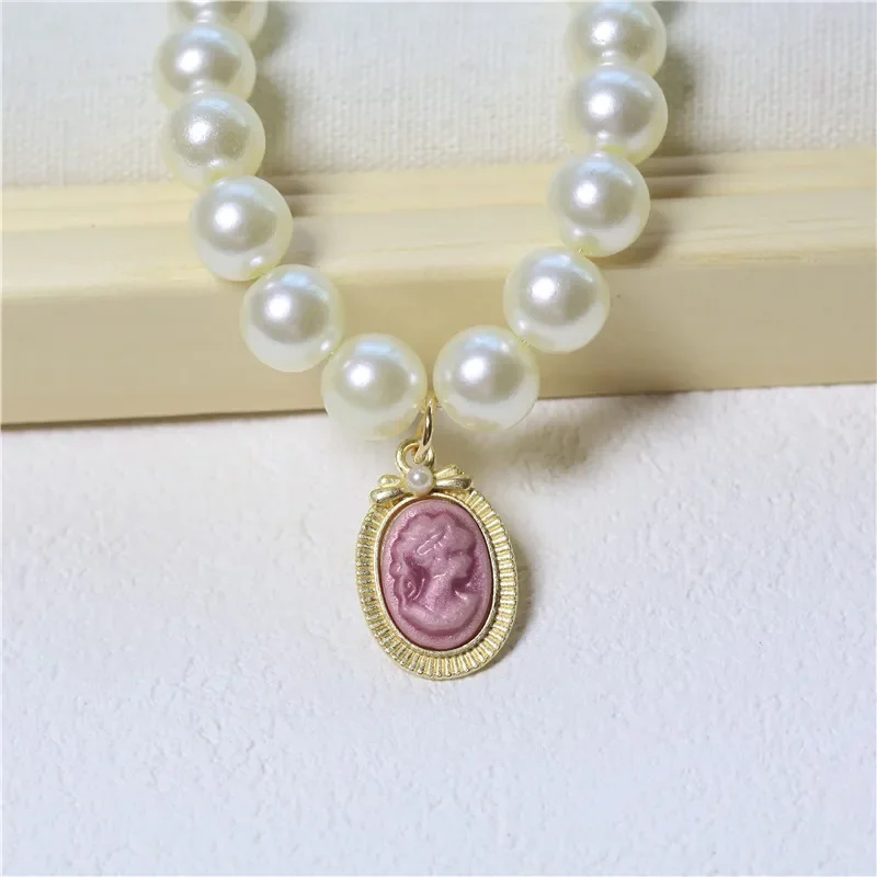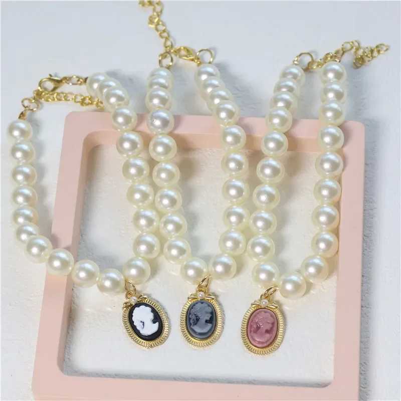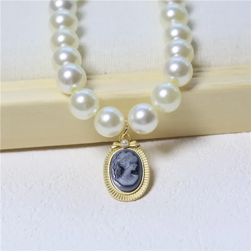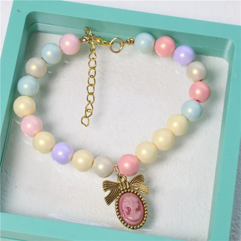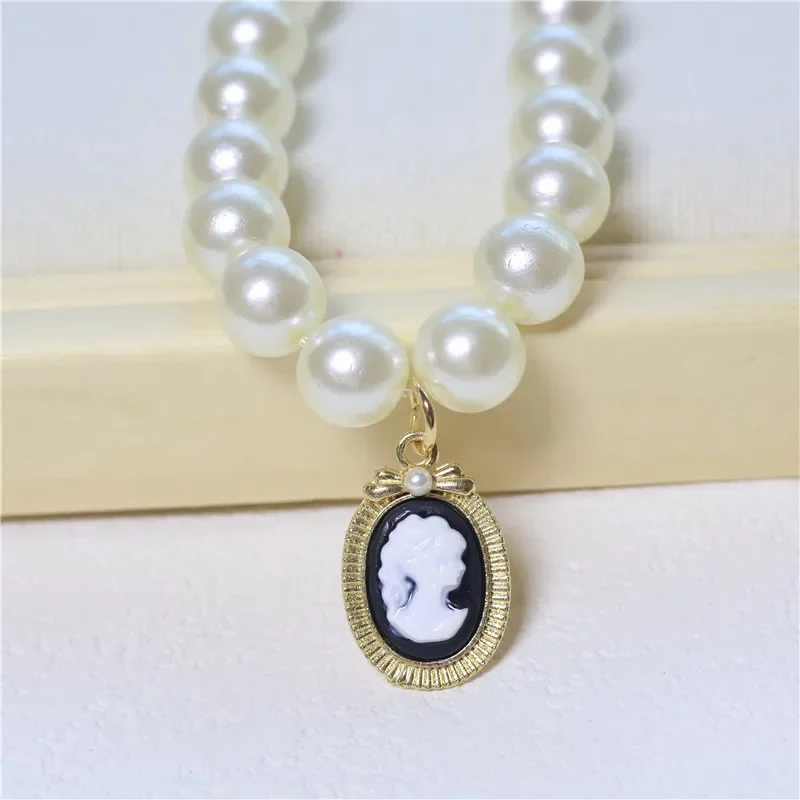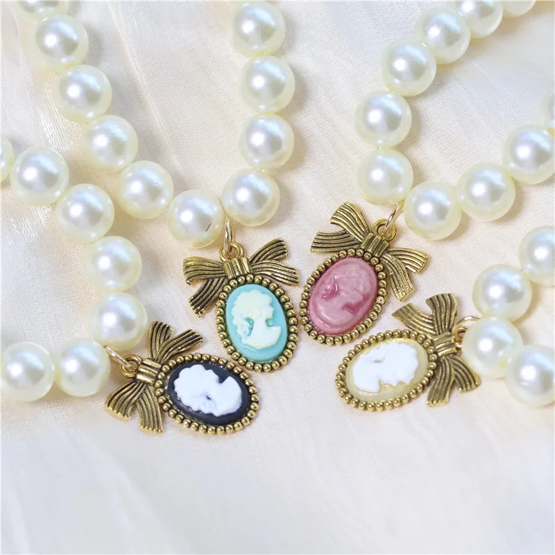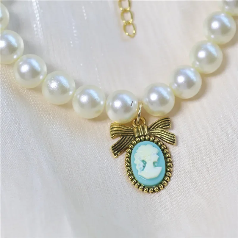 Colgante con retrato Vintage, Collar de perlas para mascotas, lazo Retro de lujo, Collar para perro y gato, accesorio para el cuidado de mascotas