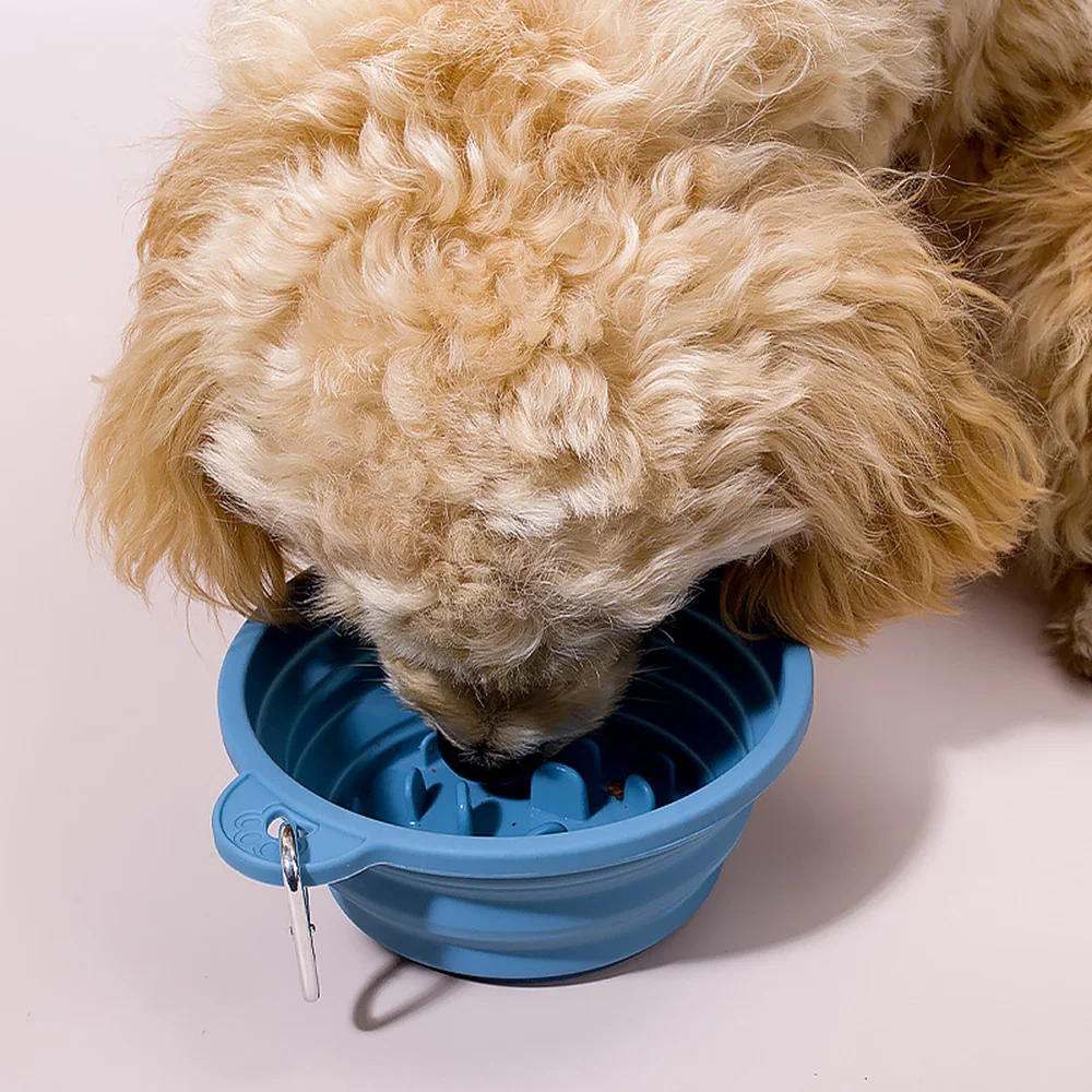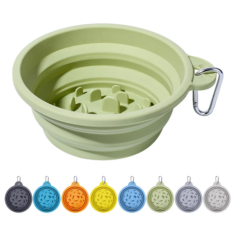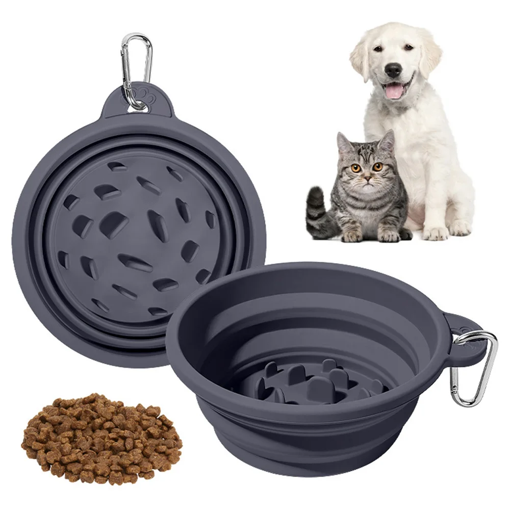 Collapsible Pet Bowl Outdoor Portable: Silicone Slow Feeder Bowl for Dogs Cats, Foldable Pet Food Dish to Slow Eating,