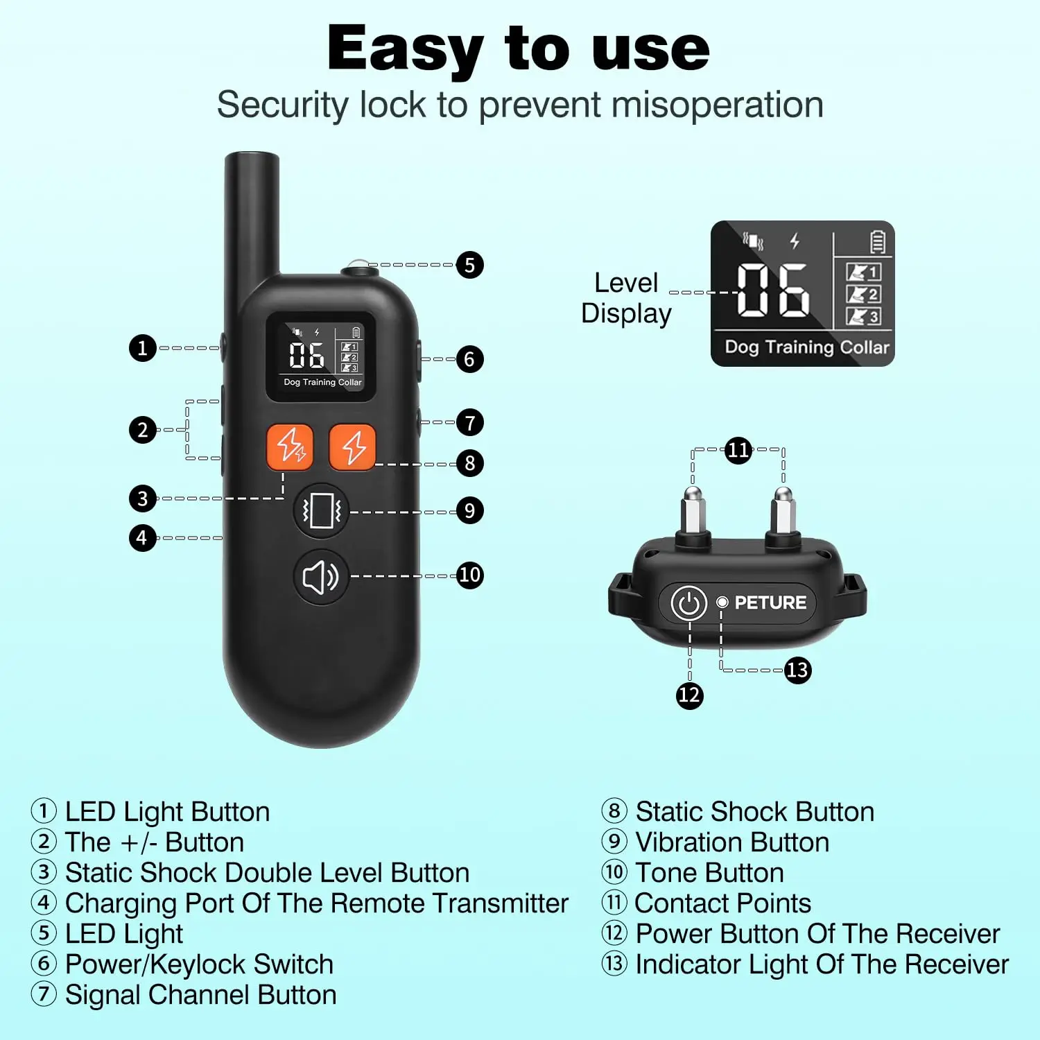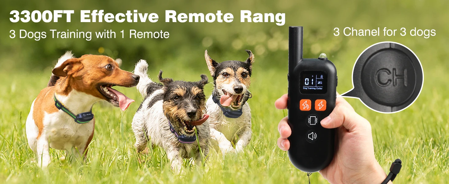 Control remoto de 3 canales: administre hasta 3 mascotas simultáneamente, equipado con un bloqueo de seguridad para evitar operaciones accidentales
